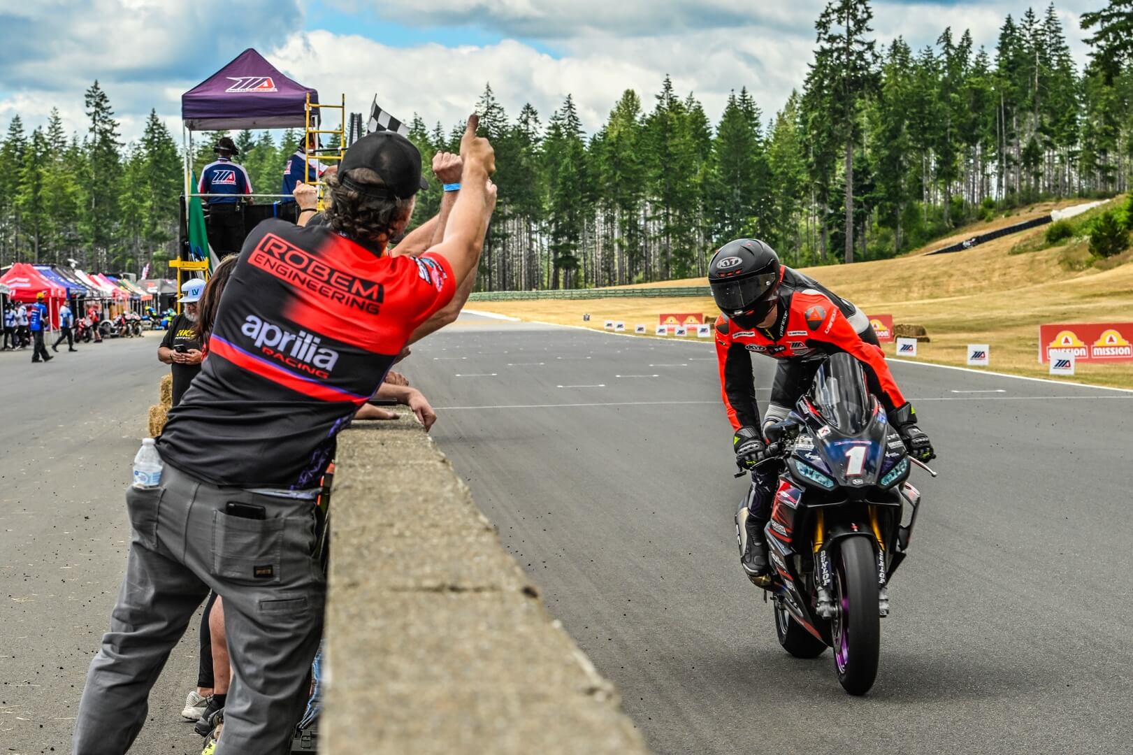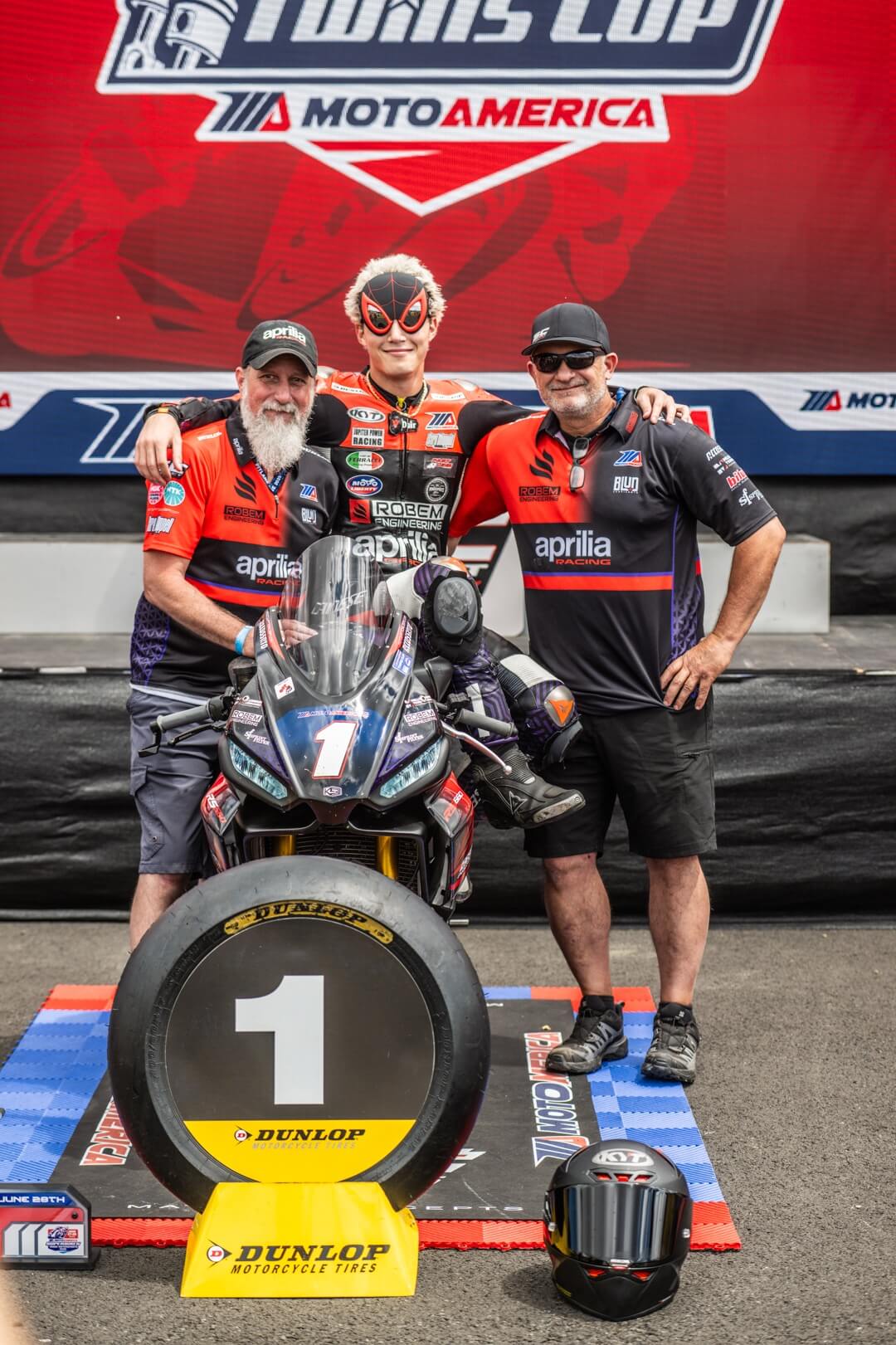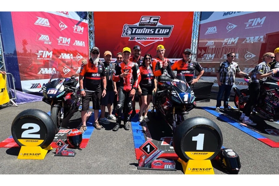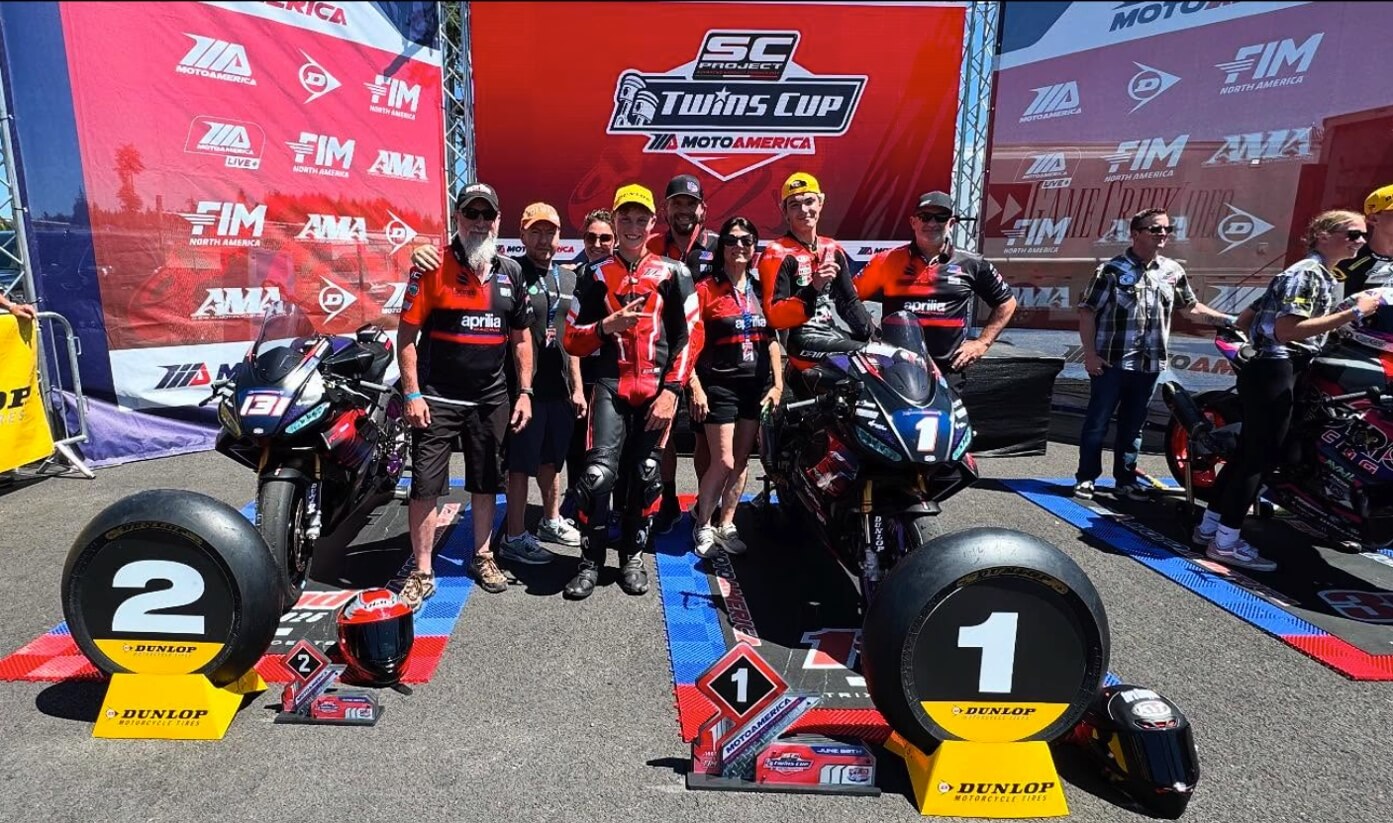 SHELTON, WASHINGTON (USA), 29 giugno 2025 – Aprilia RS 660 si è imposta nel round della MotoAmerica Twins Cup di Ridge Motorsports Park, con il campione in carica della Twins Cup Alessandro Di Mario al comando per il team Robem Engineering. Di Mario ha dominato ogni sessione, conquistando la pole position, due vittorie e un nuovo record sul giro. Il compagno di squadra e debuttante in Twins Cup su Aprilia, Hank Vossberg, è stato in testa per tutto il weekend e con Avery Dreher (ex campione della MotoAmerica Junior Cup), hanno completato il podio domenica, per un monopolio tutto Aprilia.
