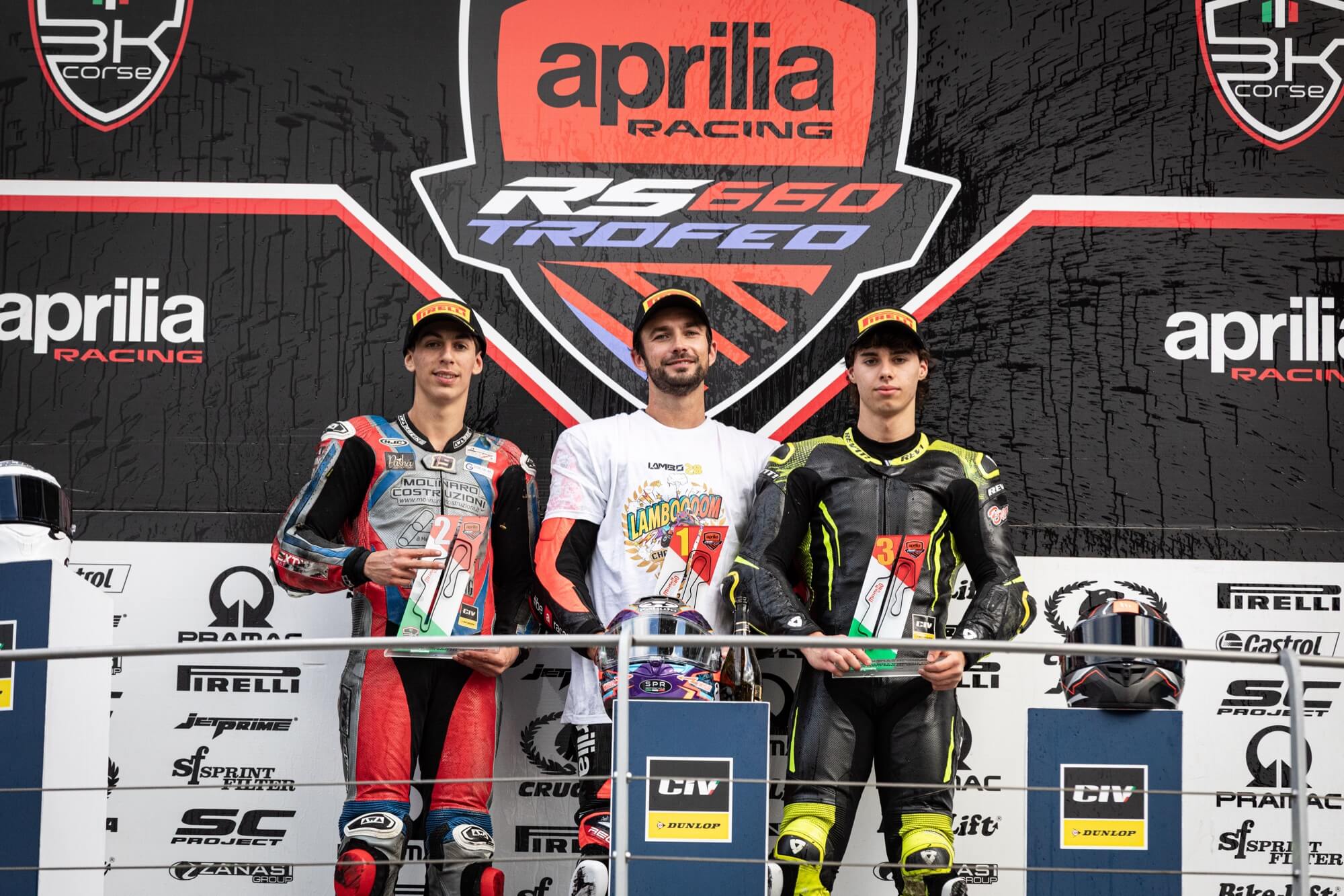 Pole Position assoluta per Ferruccio Lamborghini (Team REVO Nuova M2) in 2.00.520, davanti Jayden Fernandez (MMR) a sua volta leader della classe Pro. La prima gara del fine settimana è stata forse tra le più belle dei primi cinque anni del Trofeo Aprilia RS 660, per spettacolo in pista e incertezza fino al traguardo.