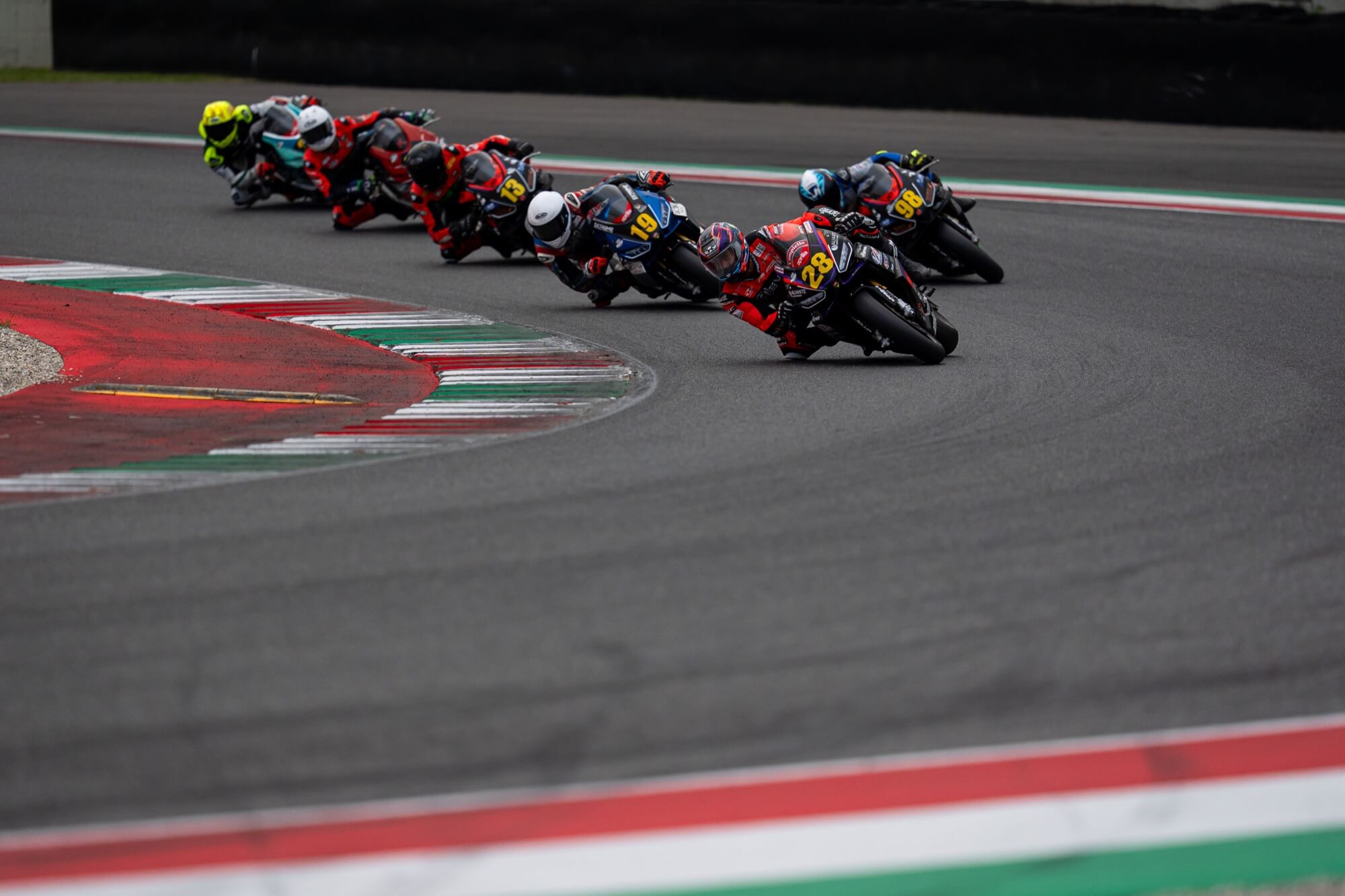 Nella Pro seconda vittoria di fila per Thomas Benetti (MMR) – wild card, più che competitivo alla prima volta al Mugello con l’Aprilia RS 660, davanti al compagno Fernandez e Mattia Bosello al primo podio stagionale (Team IVR Racing Project). Al via di Gara 2, Lamborghini e Virone sono partiti con un distacco di soli due punti e l’occasione per entrambi di puntare al titolo. Gara perfetta per Lamborghini, bravo a sfruttare qualche incertezza dei piloti davanti a lui dopo, recuperando posizioni e massimizzando la lotta alle sue spalle, prendendo il largo e scappando verso il successo.