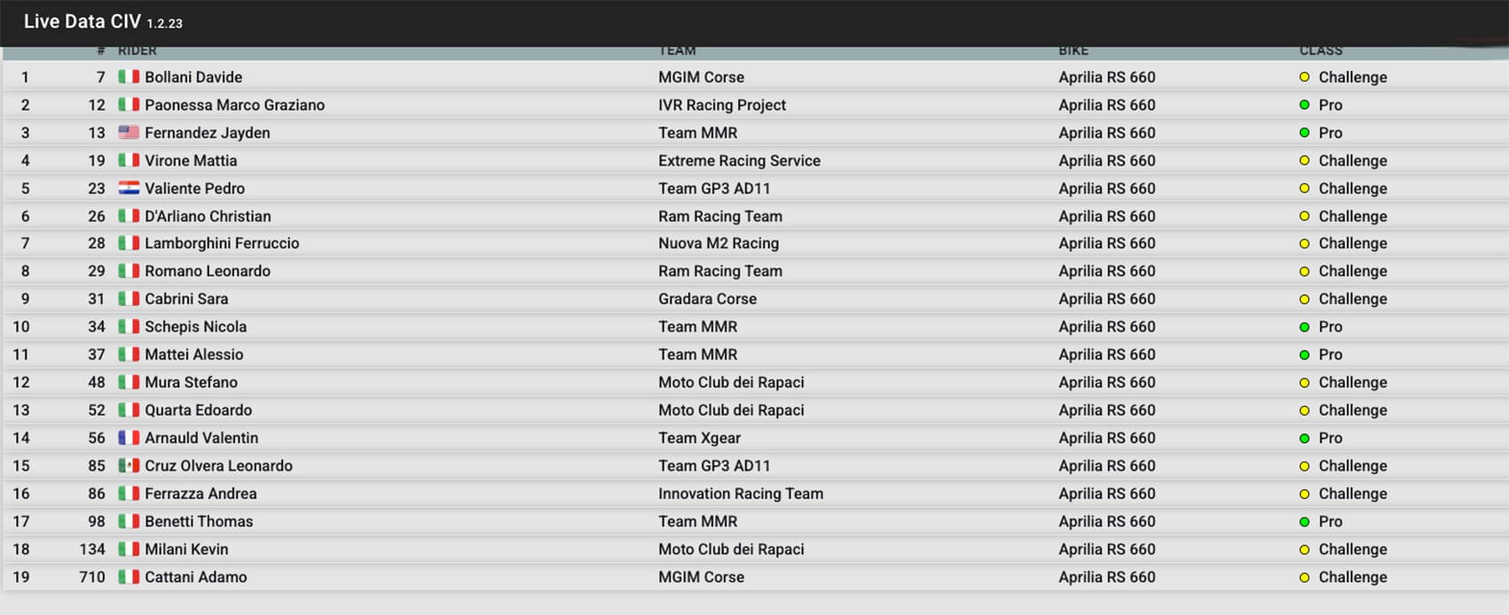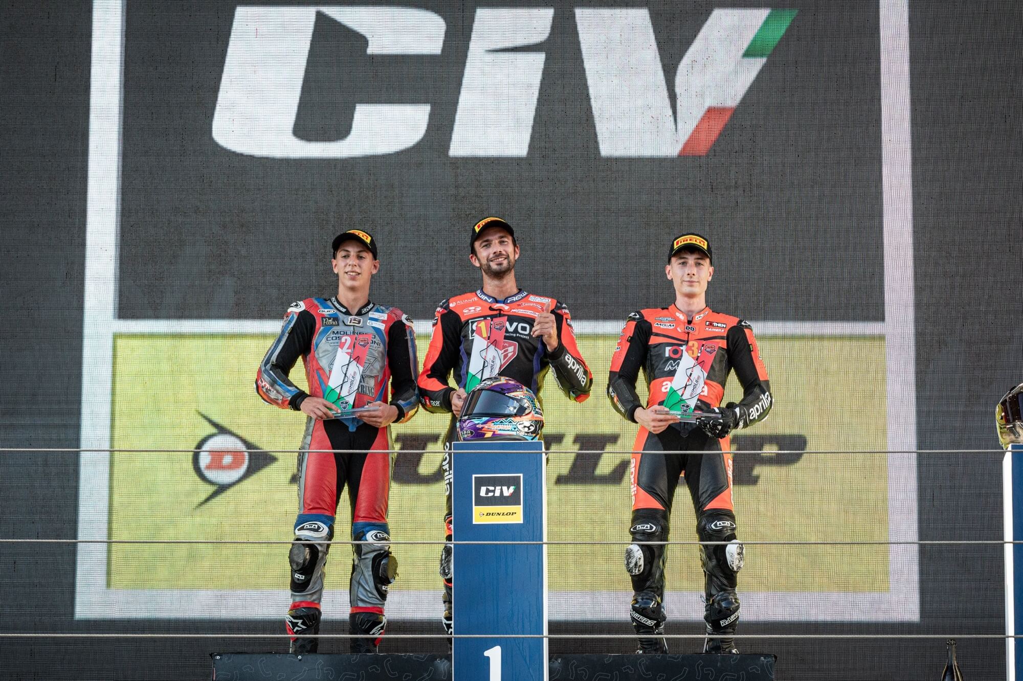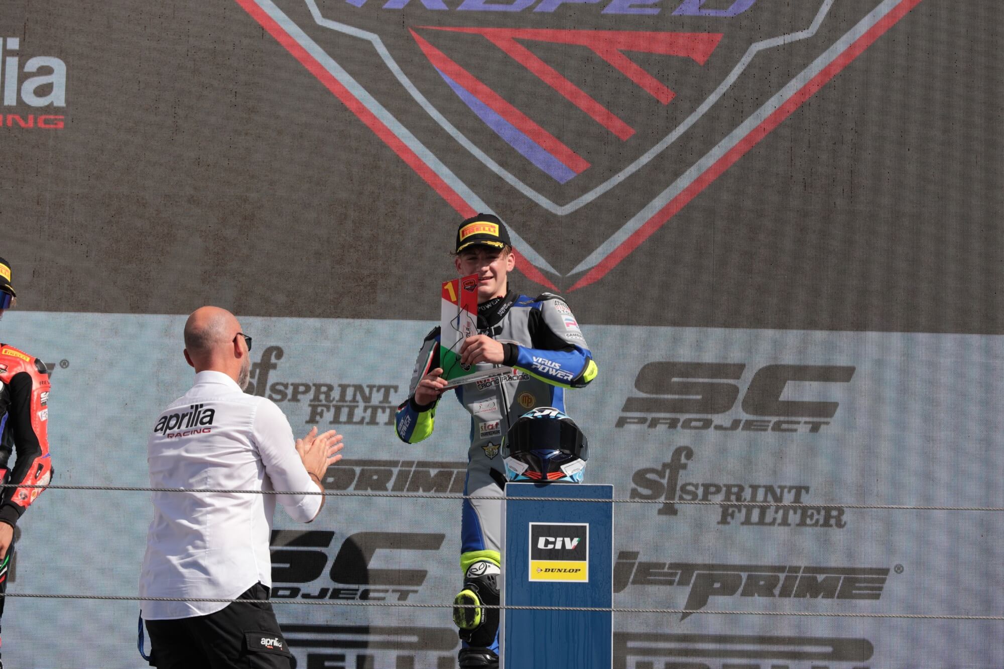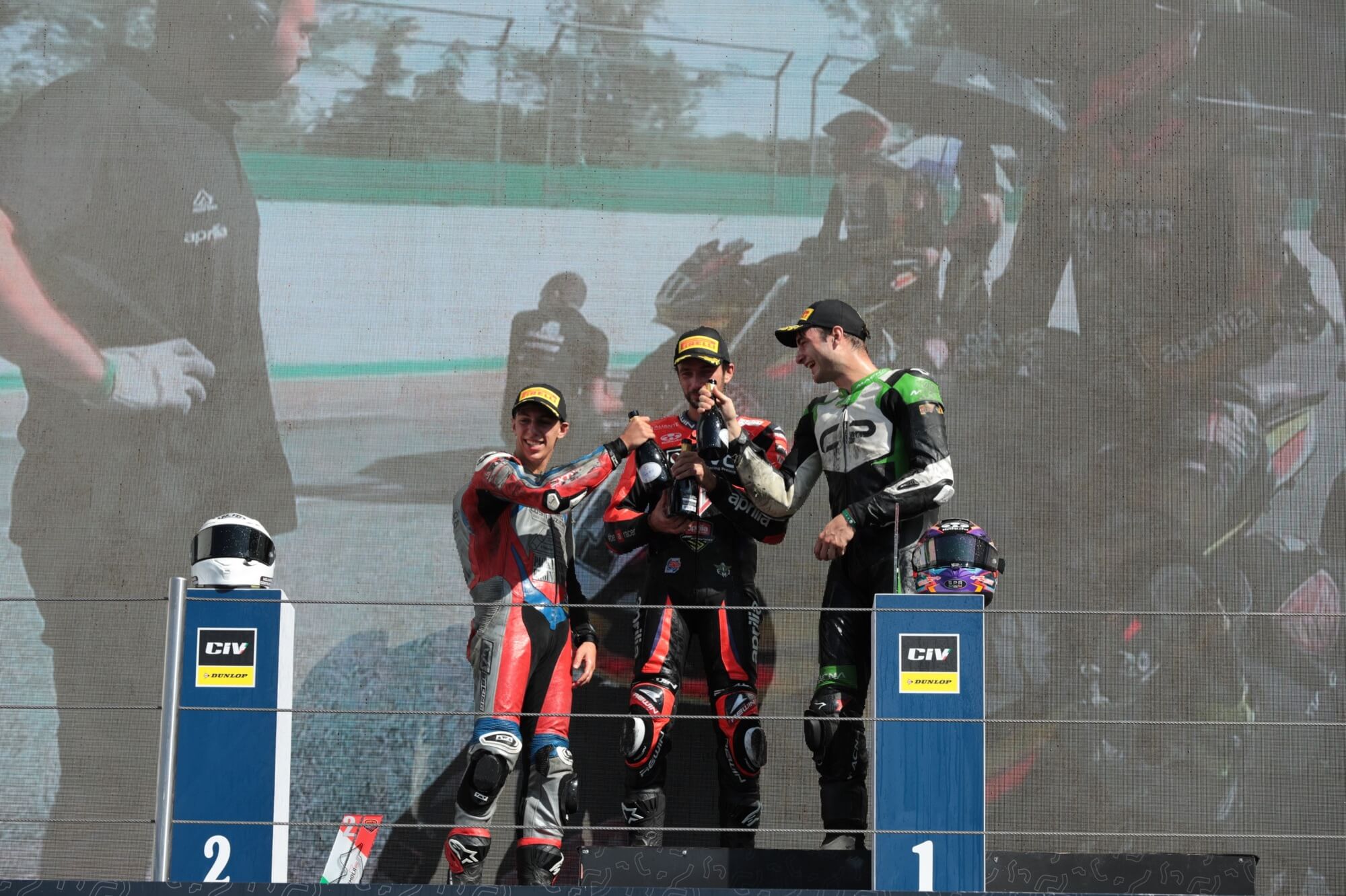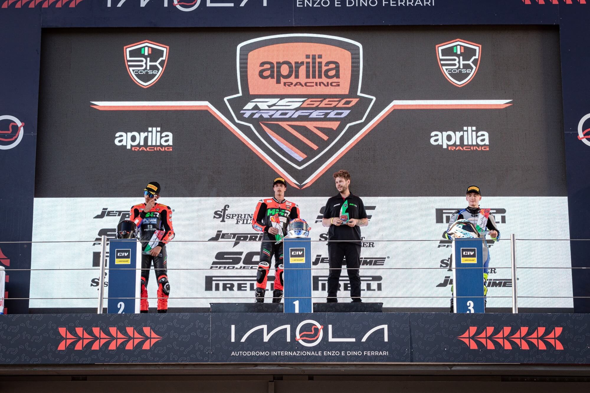 GARA 2. La gara conclusiva ha premiato l’ottimo debutto di Thomas Benetti. Primo fine settimana con la RS 660 subito vincente e impreziosito dal sorpasso all’ultimo sul compagno alla Rivazza 1. Secondo posto per Fernandez, ancora leader della generale, terzo Nicola Schepis (Team MMR) per la prima volta sul podio.