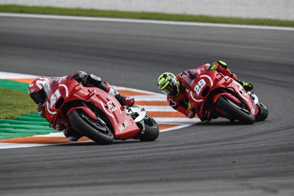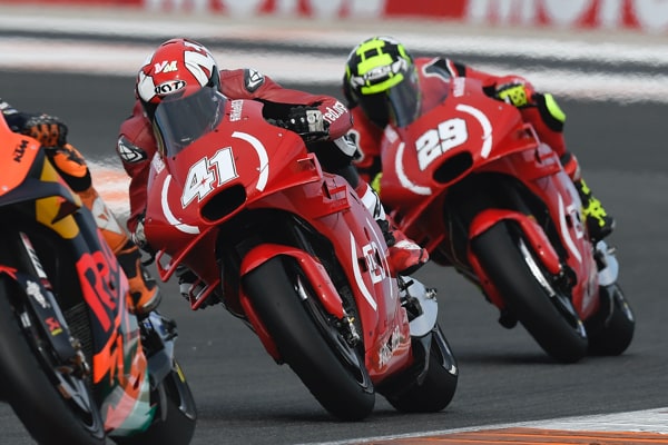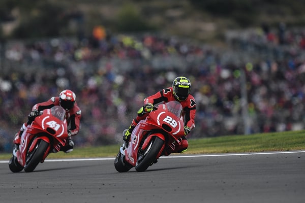 ANDREA IANNONE (moto n. 29): "Sono abbastanza contento della gara di oggi. Pur partendo molto indietro sono riuscito a recuperare tante posizioni e a lottare, divertendomi, con il mio compagno di squadra per la top ten. Rispetto a ieri e a venerdì siamo riusciti a trovare un buon ritmo, anche se quando mi sono trovato a comandare il gruppetto la temperatura della gomma anteriore è scesa velocemente. Nel cambio di direzione tra la curva 9 e la 10 ho spinto un po’ di più per difendere la posizione e sono scivolato, un peccato per il risultato finale ma fino all'ultimo giro la nostra è stata una buona gara".