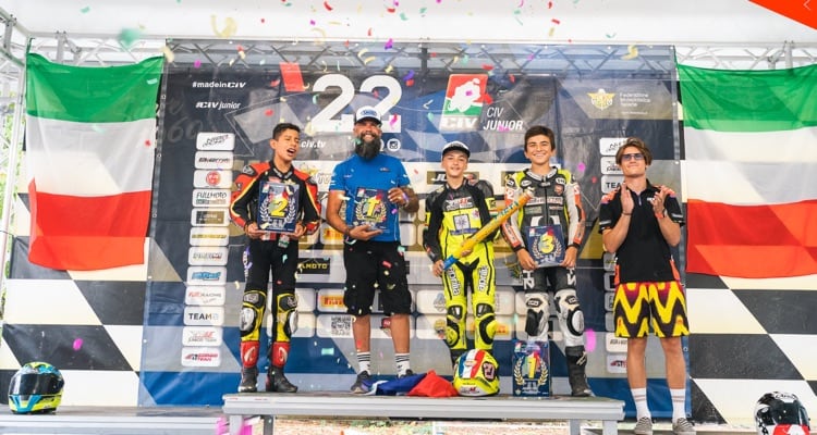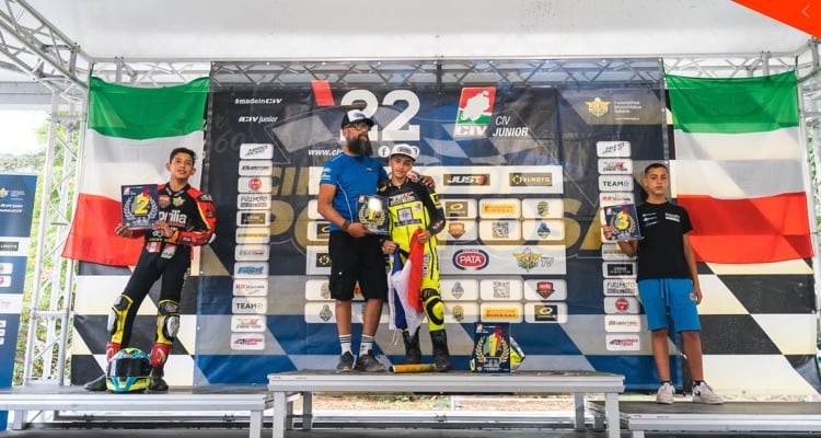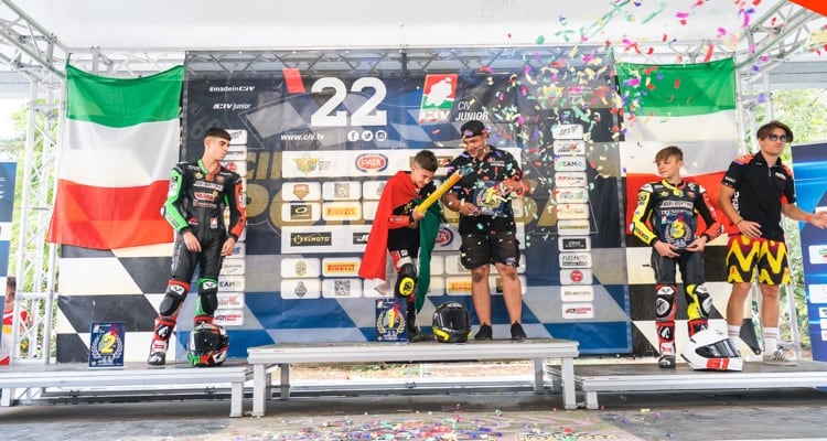 Agosto 2022 - Un weekend entusiasmante quello del quarto round CIV Junior a Pomposa (6 e 7 agosto 2022, due gare per ogni classe), dove il giovanissimo Valentino Sponga (moto n. 30) si è “matematicamente” laureato Campione Italiano FMI Aprilia Sport Production SP2 con un doppio round di anticipo. Valentino Sponga, vincendo sette gare su otto e con un solo secondo posto, in categoria SP2 ha dominato il Campionato 2022 del trofeo monomarca Aprilia dedicato ai giovani talenti. Anche a Pomposa Valentino è stato leader incontrastato: per lui pole e doppietta nella giornata che lo consacra il migliore tra i piloti in sella alle Aprilia 250 SP.