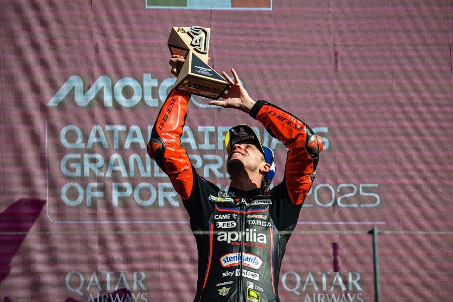 Portimão (Portogallo), 9 novembre 2025 – Il weekend di Aprilia Racing all’Autódromo Internacional do Algarve si è concluso con una straordinaria vittoria al termine di una gara semplicemente perfetta. Partito dalla pole position, Marco Bezzecchi ha dominato dal primo all’ultimo giro, imponendo un passo gara inavvicinabile e tagliando il traguardo con oltre due secondi di vantaggio sul primo inseguitore.