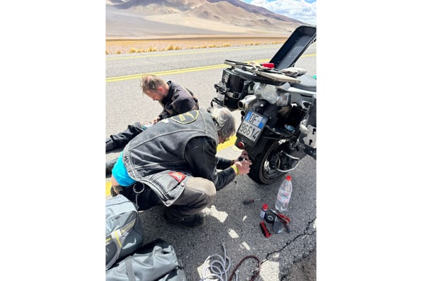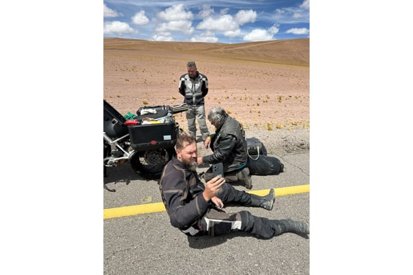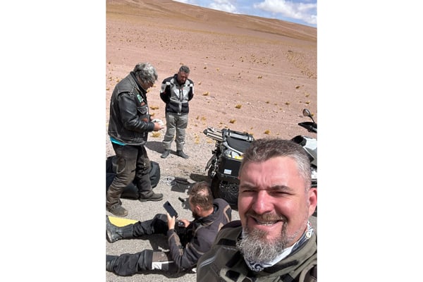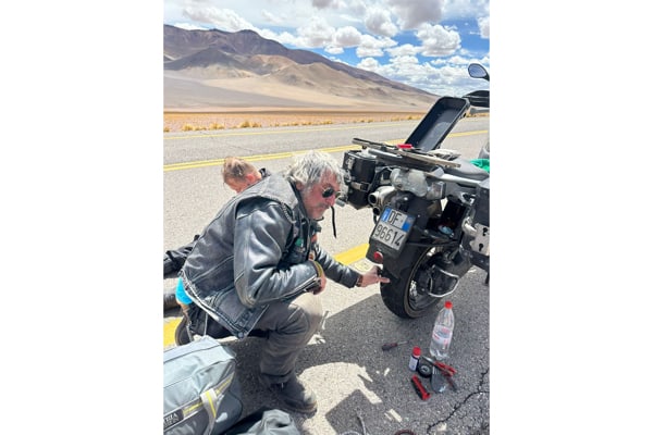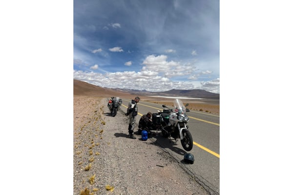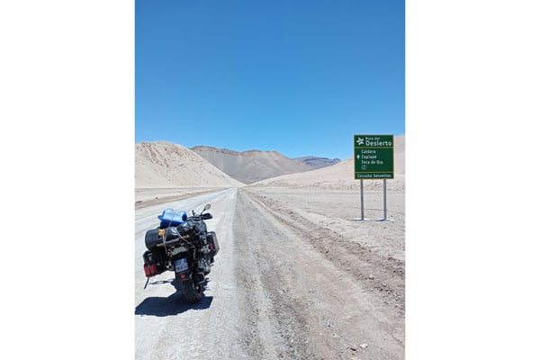 Quota, vento, sabbia e sassi. “Abbiamo viaggiato sempre in altopiano, tra 700 e 1.000 metri di quota, fino a passi di 4.770 come quello di Agua Negra, paesaggio brullo, sabbioso e sassi, sulla Ruta 3, con molto vento; mentre la zona de Rio Grande è più verdeggiante con montagne alte. Gianmario era in sella ad una moto giapponese 650 (e tom tom con qualche problema di ricezione a quelle latitudini), io con una Stelvio 1200 (del 2008, con 90 mila km, e la cara, vecchia e affidabile cartina del Sud America). Il vento forte spostava la moto a Gianmario, mentre io ho viaggiato comodamente, la Stelvio è una moto solida, efficiente in tutte le situazioni di guida e di terreni, da asfalto a sterrati. Ho percorso 19.600 km in totale, senza problemi, escludendo due forature; il bello è la solidarietà tra bikers, quando ho forato in mezzo al nulla mi hanno supportato dei motociclisti brasiliani”.