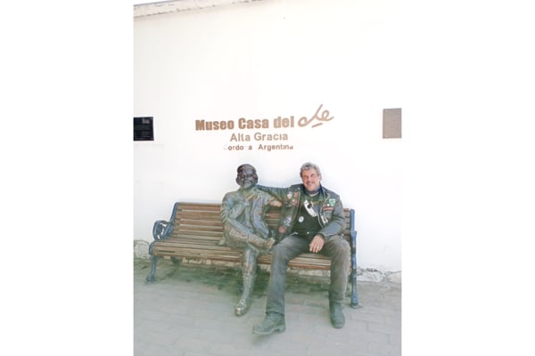 Salutando i nuovi amici argentini. “Sono molto soddisfatto di questa avventura, avendo superando il momento più tosto delle forature, e contento dei bikers incontrati, che peraltro ammiravano la mia Moto Guzzi Stelvio; come Kim un sudcoreano con una GS, eravamo nello stesso hotel a Santiago de Cile. E poi le nuove amicizie, come quella con l’argentina Carola e la sua famiglia (di origine italiana), a Cordoba. Qui abbiamo visitato ‘Villa Nydia’, Museo-casa del Che, dove visse la famiglia Guevara, ad Alia Gracia. Quanti bei momenti ho vissuto, sembrava di vivere in un film ad ogni chilometro, e poi le grandi mangiate di pesce e di chorizo (carne alla griglia, buonissima, parola di Toscano doc). E un grazie finale va alla mia affidabile Stelvio (confortevole, anche se si volesse viaggiare in due con bagaglio), che mi ha portato alla fin del mundo”.