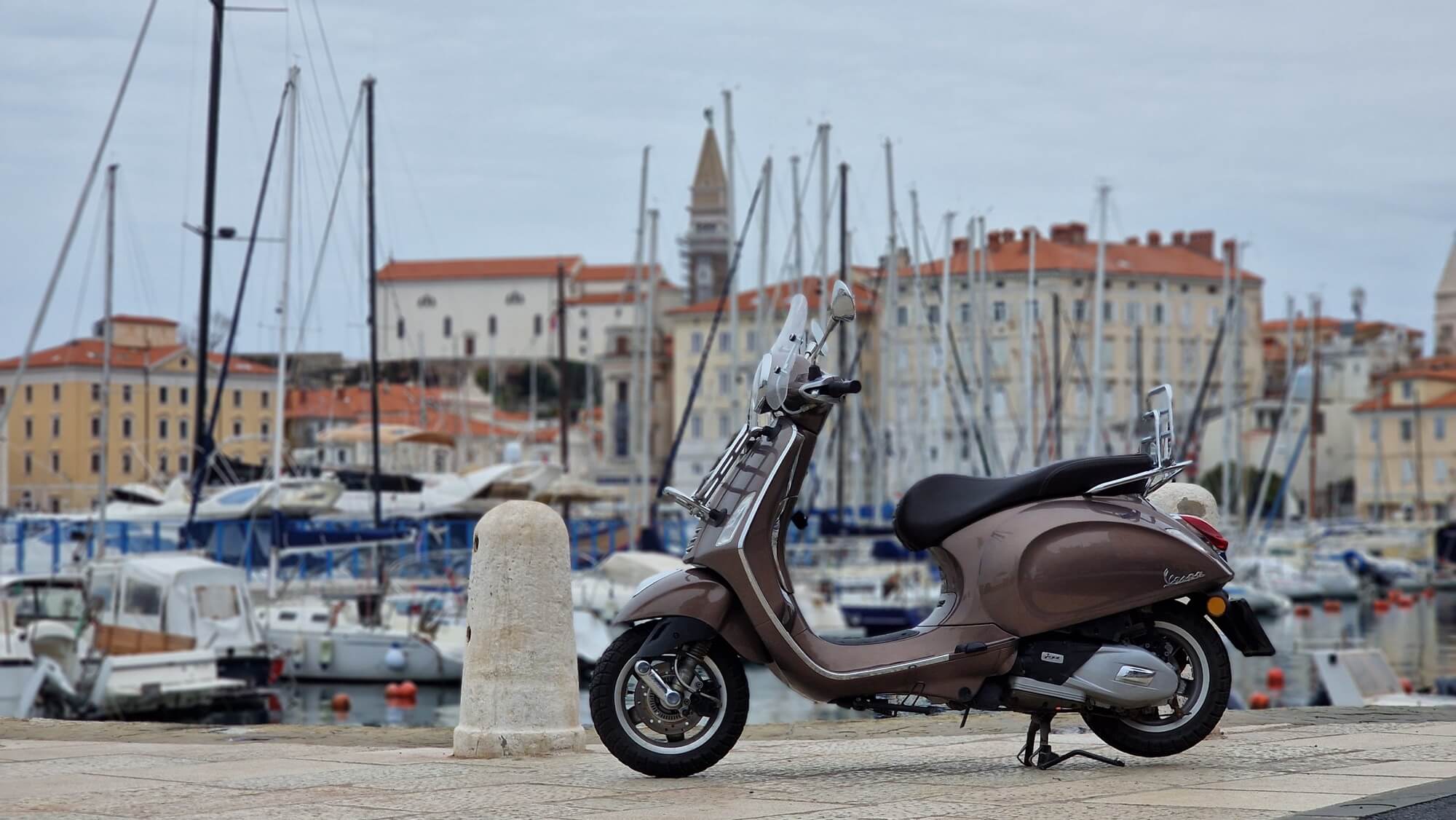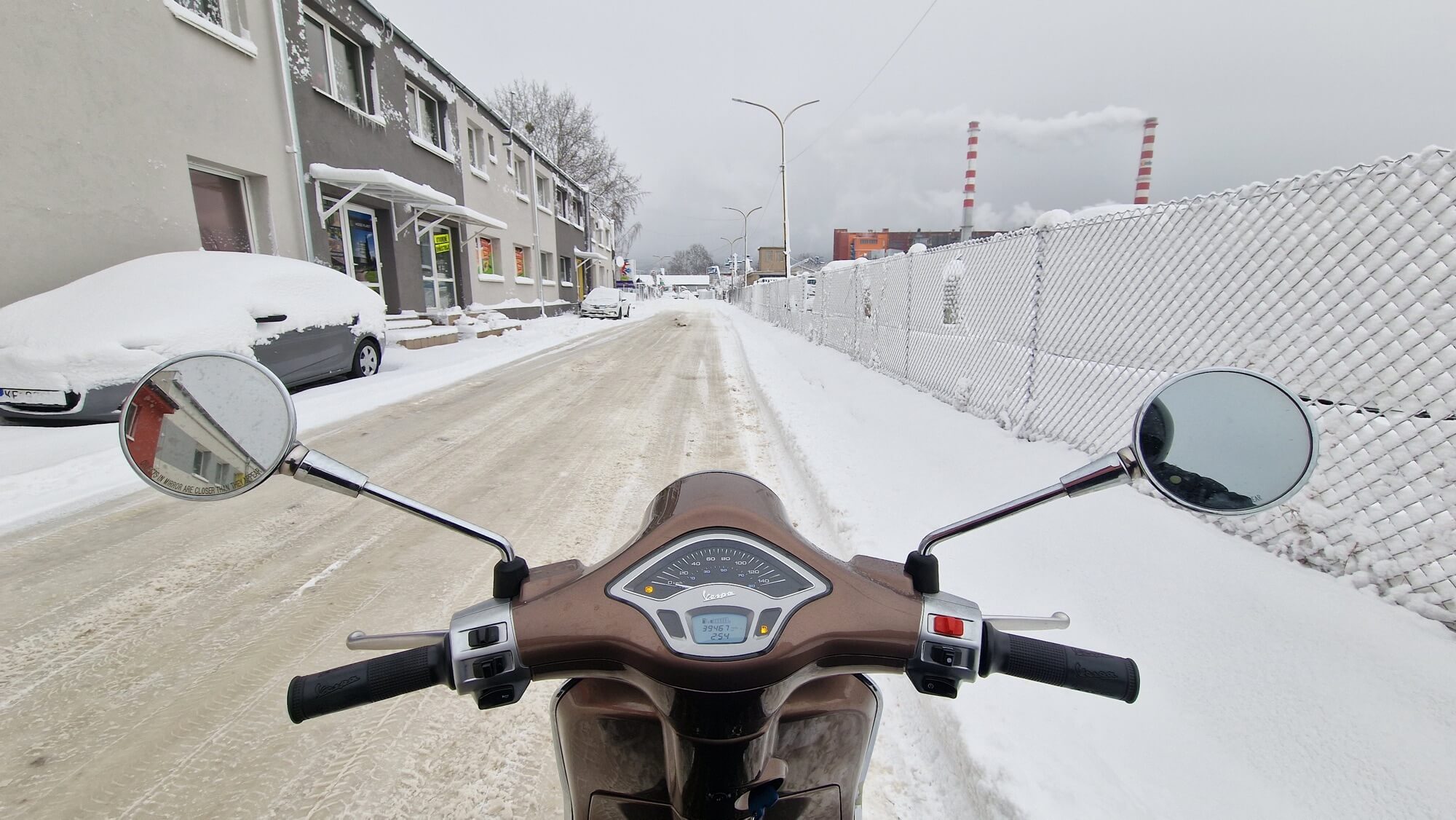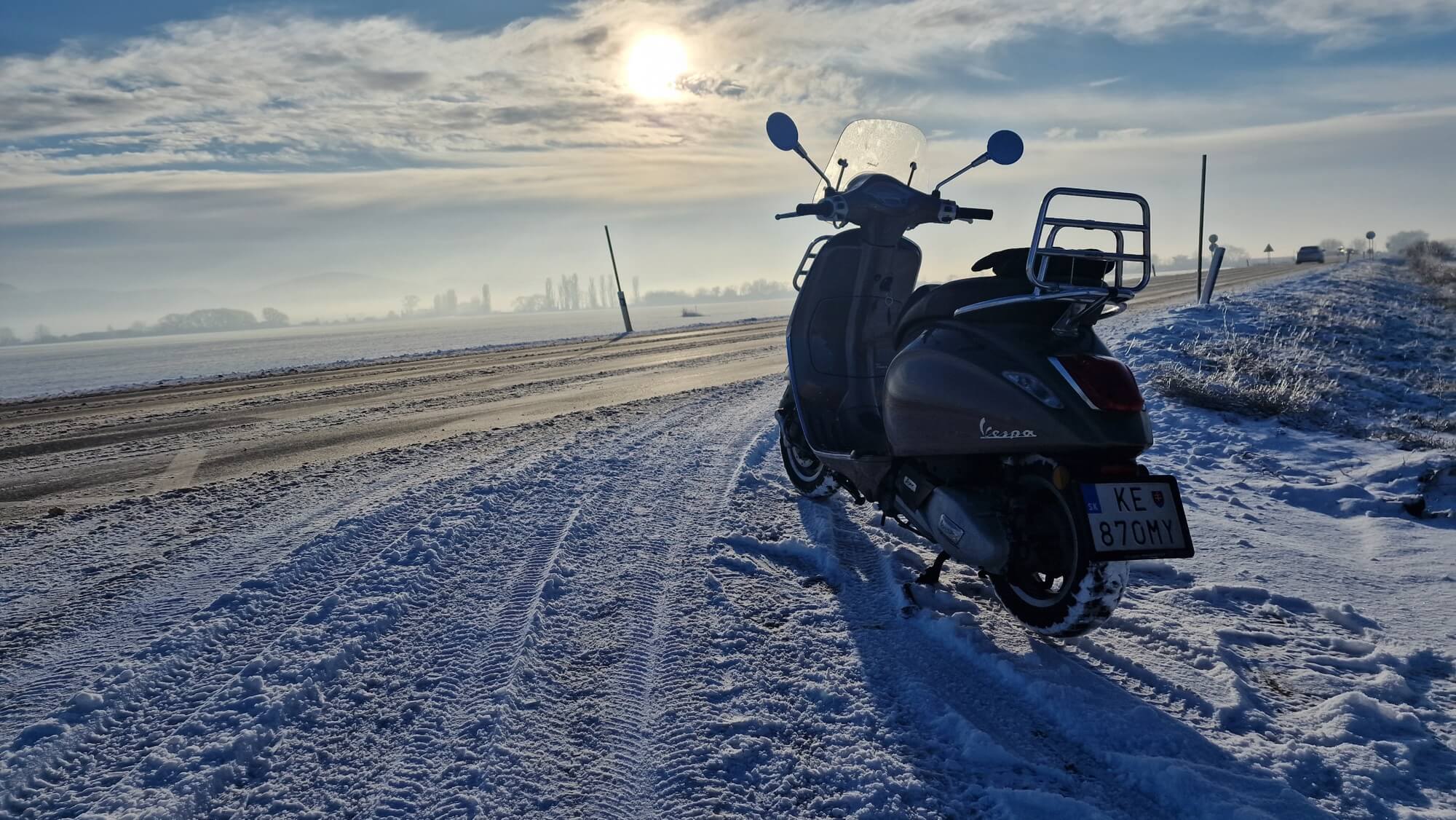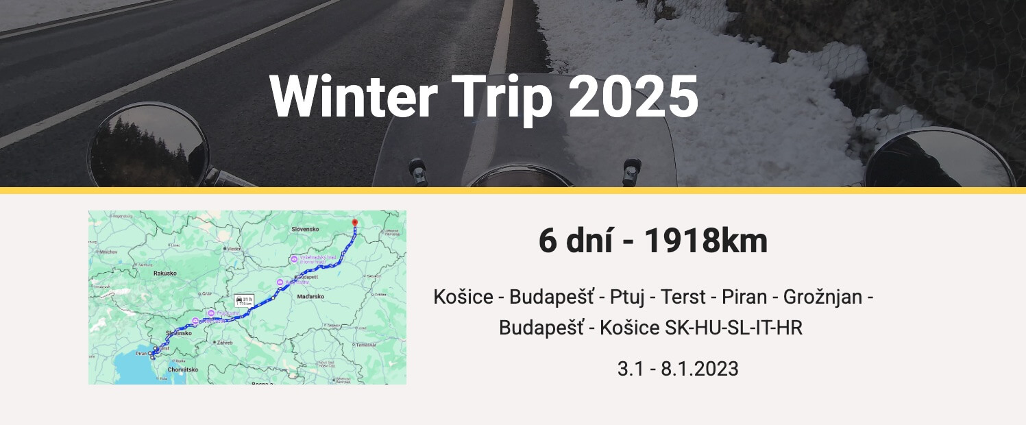 Parto il 3 gennaio con veramente tanta neve in città. Il meteo certo non era perfetto, perché mancava il sole a Trieste, ma è stato fantastico. Pazzesco e fantastico, e sono sicuro di essere il primo e unico Vespista slovacco ad aver compiuto un viaggio del genere sulla costa a gennaio.