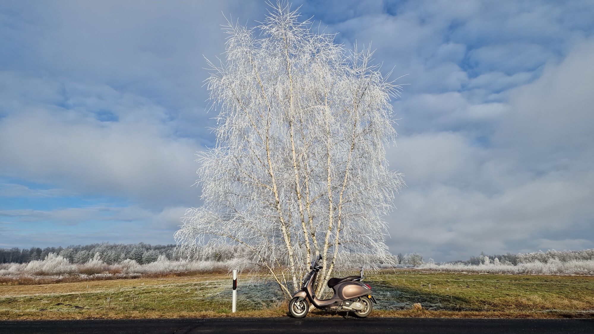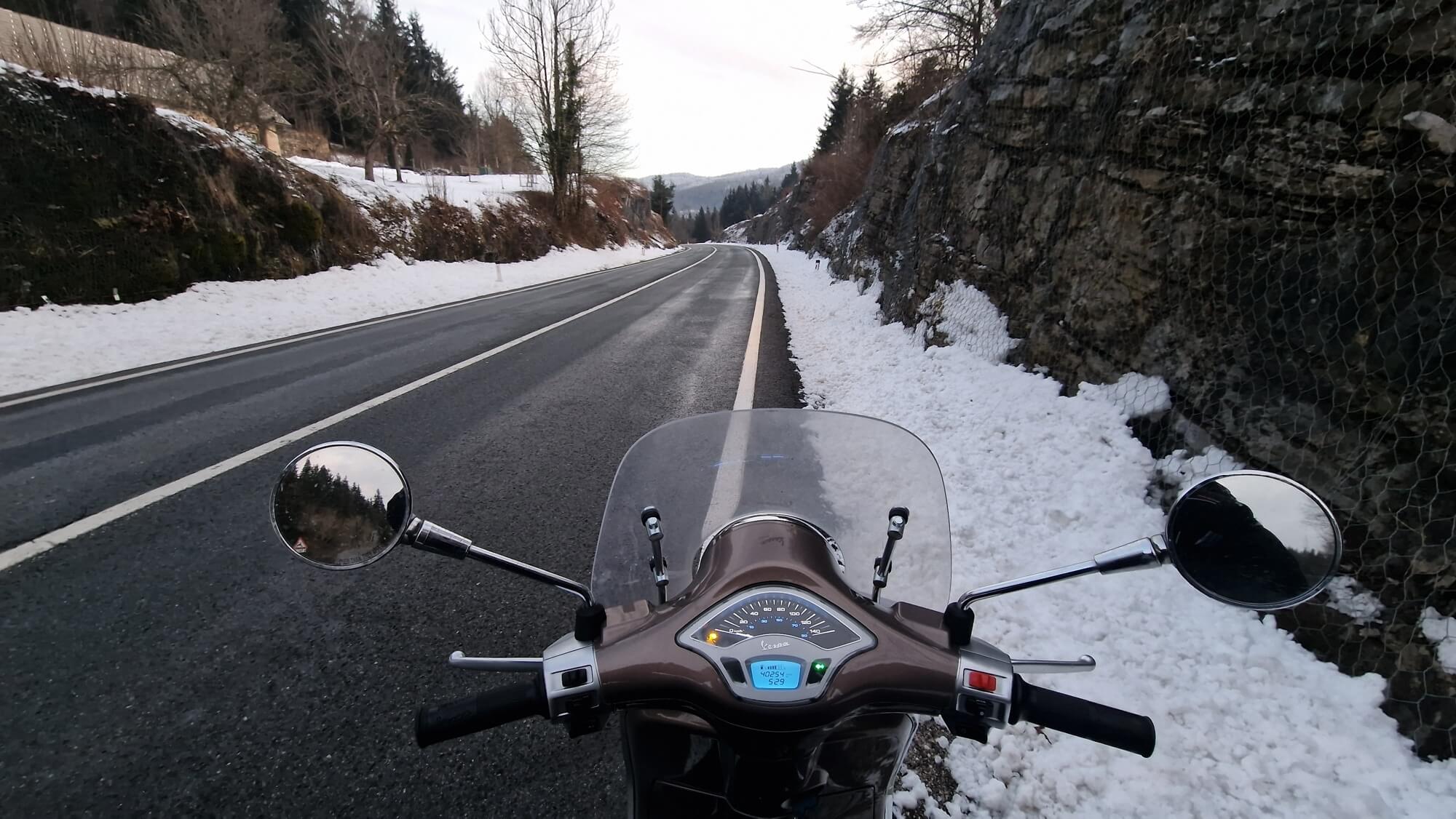 La mia Vespa Primavera 125 era pronta per questo impegnativo viaggio, equipaggiata con pneumatici invernali. Ho percorso in totale 1.918 km andata e ritorno in 6 giorni (senza autostrada) per godermi un originale ‘Italian Feel’.