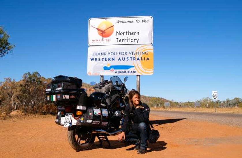 Da quel momento, per noi tre, io Daniela & Motina (un perfetto team), è stato solo un susseguirsi di scoperte: Austria, Francia, Spagna, Siria, Germania, Portogallo, Svizzera, Marocco, Lituania, Andorra, Irlanda, Olanda, Slovenia, Estonia, Belgio, Inghilterra, Danimarca, Finlandia, Scozia, Lettonia, Islanda Bulgaria, Svezia, Norvegia, Polonia, Turchia, Russia, Repubblica Ceca, Bielorussia, Slovacchia, Grecia, Serbia, Croazia, Ungheria, e ancora USA (coast to coast), Tourist Trophy, North West 200, Bol D’Or, Capo Nord, Elefantentreffen, l’incredibile e affascinante Australia, nonché Sud Africa, Namibia e Botswana. Sono trascorsi venticinque anni e da allora Motina si è ‘digerita’ oltre 270.000 chilometri, sempre in nostra compagnia e in perfetta forma”.