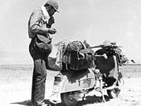 Mezzo secolo dopo, per ricordare quell’impresa, il figlio Franco, architetto, lo scorso luglio è partito da New York in sella alla sua moderna Vespa GTS 300 per un bel viaggio coast to coast negli Stati Uniti, fino a Los Angeles. Ha percorso in solitaria circa 8.000 chilometri, attraversando i luoghi più suggestivi di 9 Stati (New York, Pennsylvania, Illinois, Missouri, Oklahoma, Texas, New Mexico, Arizona, California), non senza aver “messo le ruote” sulla storica Route 66, mitica highway americana. Un degno omaggio per celebrare il cinquantenario del viaggio paterno, che rimane un’icona delle avventure su due ruote. E della speciale storia di Vespa.
