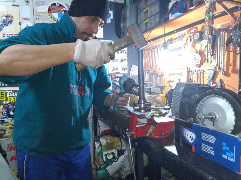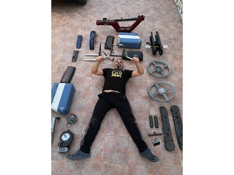 CAPITOLO 2: restauro del ciclomotore e preparazione del viaggio. Domenico si è dedicato ad un gran lavoro di restauro e preparazione del Piaggio SI: realizzazione di portapacchi anteriore e posteriore, di serbatoi supplementari per la benzina e olio per la miscela, installazione e saldature delle staffe per telefono cellulare e navigatore satellitare, e tutta una serie di modifiche strutturali per reggere i pesi e gestire i servizi in viaggio. Domenico, che si dichiara profondo conoscitore della meccanica, “per questa sfida impegnativa – spiega – ho scelto questo veicolo perché facile da gestire, ma ero ben consapevole delle difficoltà connesse alle lunghe distanze da percorrere, che avrebbero messo a dura prova sia la ciclistica sia la meccanica del veicolo”.