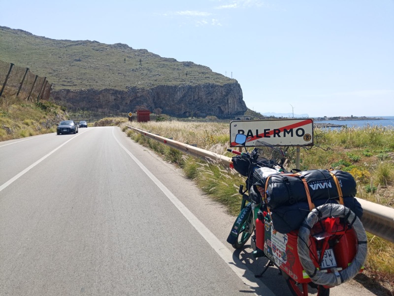 8 maggio 2024: prima tappa del ride di Domenico Faraci, da Palermo al Museo Piaggio di Pontedera.
