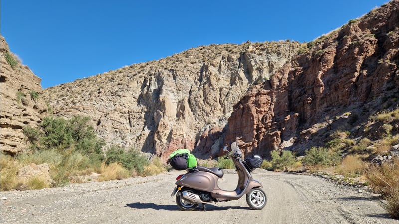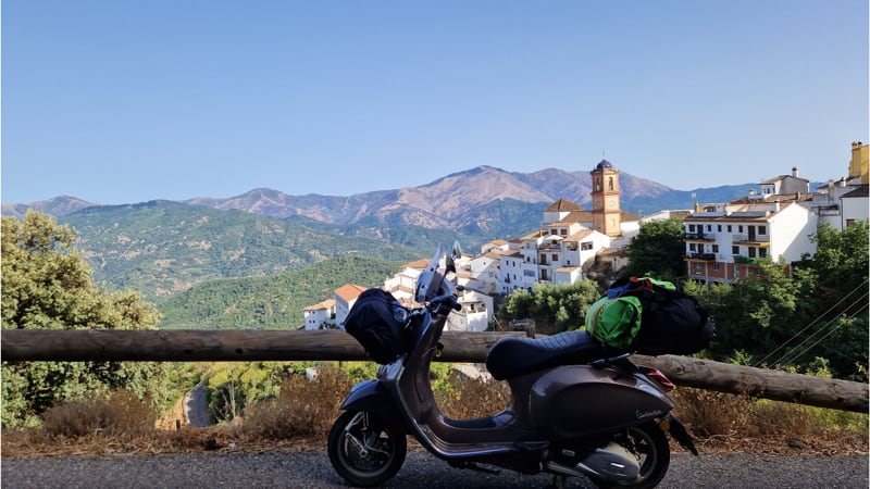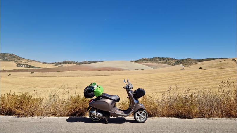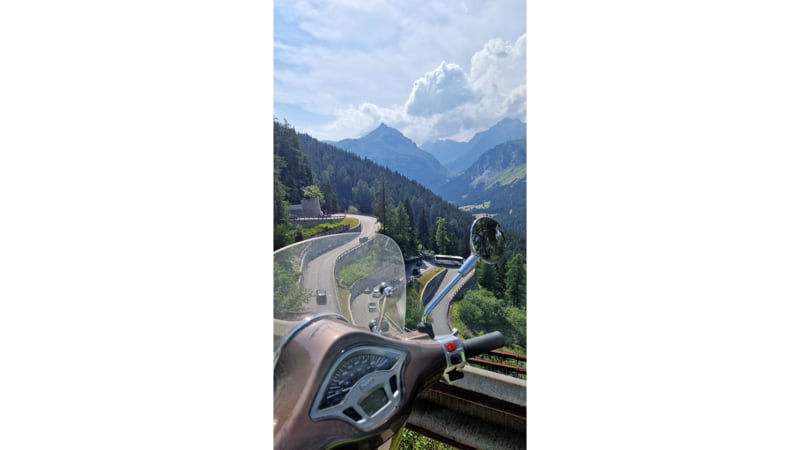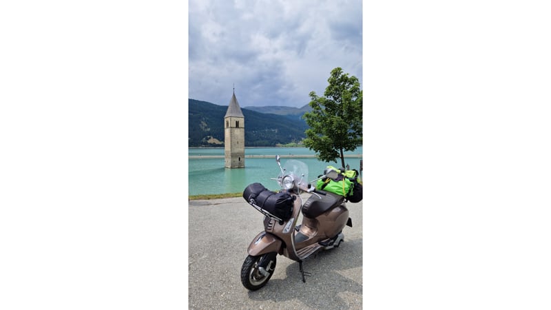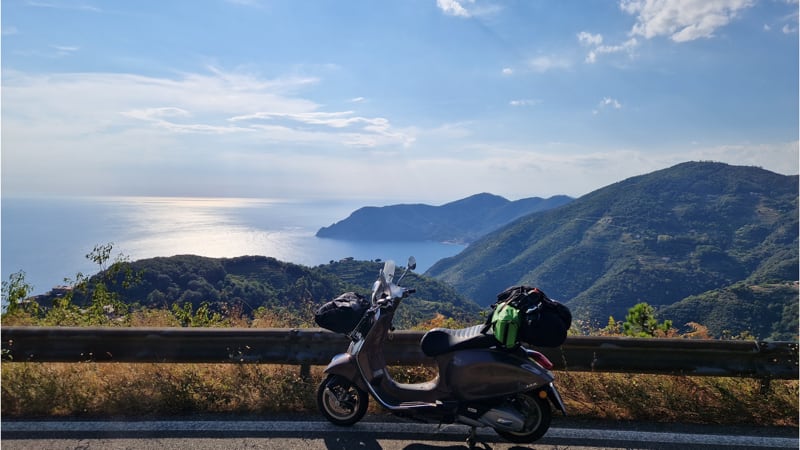 La prima sfida più grande è stata preparare il bagaglio per il viaggio. Dato che avevo già una certa esperienza dai viaggi precedenti, ho ritenuto di aver bisogno di un po’ di tutto, da un costume da bagno a una giacca impermeabile. Fortunatamente, questo è stato gestito senza alcun intervento aggiuntivo: ho gestito tutto con i portapacchi, anteriore e posteriore, dell’allestimento Touring della mia Vespa. Il coraggio necessario per questa nuova sfida l’ho trovato nel desiderio di affrontare luoghi e strade dove non ero mai stato prima in vita mia e dal gusto per l'avventura.
