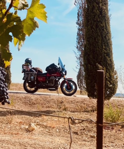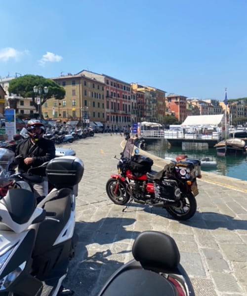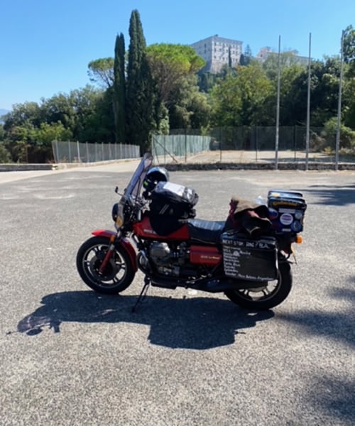 Così quest'anno (2021, ndr), dopo la pubblicazione del mio libro, “Going the Wrong Way”, all'età di 63 anni, ho deciso di prendere la stessa moto di 44 anni fa e riprovare. Insieme al mio giovane compagno di 50 anni Liam sulla sua nuova Moto Guzzi V85 TT, abbiamo lasciato il Regno Unito a settembre dopo aver partecipato all'Overland Event di Oxford (raduno di motociclisti, che si svolge ogni anno a settembre, ndr), prima di fare tappa all'Ace Cafe di Londra e al Brighton Burnout. Dopo aver attraversato la Francia ci siamo diretti verso sud attraverso la Foresta Nera e la Svizzera, prima di fermarci a Mandello del Lario per il Centenario della Moto Guzzi (…).