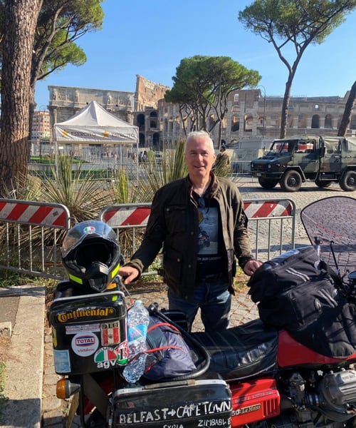 Così la presentazione: “Cresciuto nella Belfast degli anni '70 durante i Troubles (termine inglese per definire il conflitto nordirlandese, ndr), Chris ha pianificato per anni di fuggire dall'Irlanda del Nord e di andare in moto in Australia. Ma la rivoluzione iraniana ha chiuso la strada verso est, così ha trascorso i due anni successivi viaggiando per il mondo su treni, aerei, moto e navi. Dopo essere stato colpito da bufere di neve nelle Alpi austriache, si è ritrovato intrappolato in Israele, poi in Siria e KIN Giordania, trattenuto dalla milizia locale con mitragliatrici e affrontando i doganieri”.
