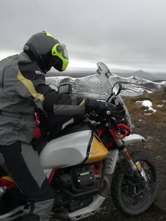 Per esempio, quando ci si ferma nei vari posti per vedere i geyser o una cascata: si trovano parcheggi approssimativi con pendenze e ciottolame vario in terra; e, mentre vedevo i miei compagni di viaggio faticare non poco per parcheggiare e muovere le maxi enduro, io con la V85 TT giravo in un fazzoletto e avevo una gestione perfetta dell’equilibrio dinamico; e poi c’è il grande protagonista assoluto: il motore, la mia vera passione”.