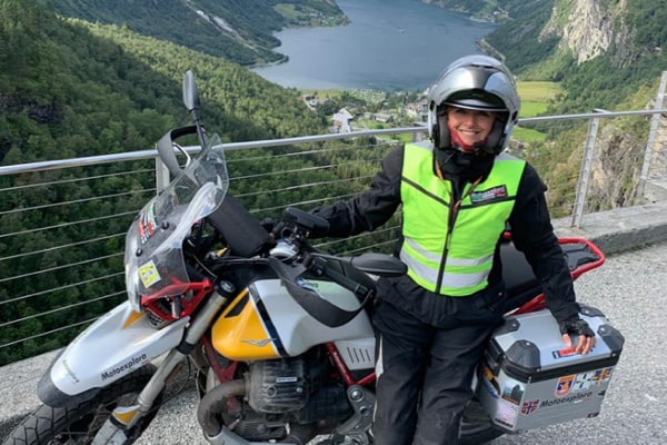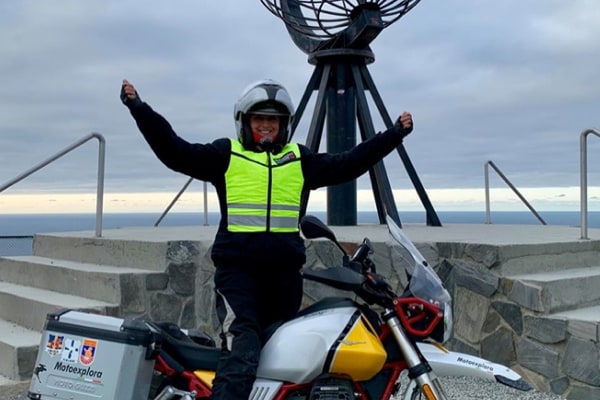 CROMILLA A NORDKAPP. “Là dove Giuseppe Guzzi portò l’Aquila di Mandello” (91 anni fa, in sella alla Moto Guzzi GT 500 Norge): ossia a Capo Nord, tra i fiordi scandinavi, meta “classica” dei motociclisti, Guzzisti in particolare, a memoria dell’impresa del fratello di Carlo Guzzi, fondatore del marchio. L’indomita Cromilla in sella alla Moto Guzzi V85 TT ha guidato il ride motociclistico “Destinazione Nordkapp” (tra fine agosto e inizio settembre, per Motoexplora), commenta sulla pagina facebook di Moto Guzzi World: “Mi chiedete come mi sono trovata, non sono un tecnico, lo sapete, ma provo a raccontarvi le mie sensazioni di guida... Ho percorso 9.194 km trovandomi bene sin da subito, utile il cupolino più alto e molto comoda la seduta, giusta anche per le mie gambe lunghe. La V85TT mi ha convinto sulle strade provinciali ed in autostrada, dove teneva testa a moto con più potenza e di cilindrata superiore, ma è in montagna che mi ha stupito, è molto divertente da guidare tra curve e tornanti spesso anche con la pioggia!