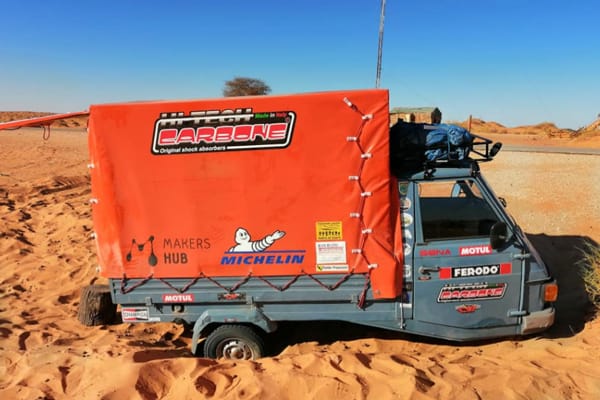 Partita a dicembre 2018, dopo un gran lavoro di preparazione del viaggio, raccolta fondi, tra sponsor e sostenitori, nonché di equipaggiamento e messa a punto dell’Ape, la spedizione con Pietro Porro alla guida (lombardo, classe 1984, educatore professionale e grande viaggiatore, anche in Vespa) è nata ad hoc per sostenere i progetti e le attività della Maison in Togo, dove conta di giungere nel corso del mese di febbraio 2019.