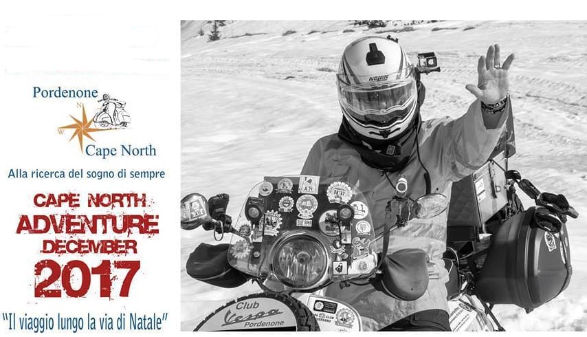 Pordenone (Friuli Venezia Giulia), 2 Dicembre 2017 – Massimo Berlenga è partito in Vespa da Pordenone in direzione Nord Europa, alla ricerca di Babbo Natale. Prevede di incontrarlo in Lapponia (Finlandia) a metà dicembre, per poi spingersi fino a North Cap, il punto più a Nord d’Europa, per far ritorno a casa dalla sua famiglia (moglie e due figlie) e dagli amici del Vespa Club Pordenone, di cui è l’ardito presidente, prima di Natale. Dopo aver percorso oltre 9.000 chilometri!