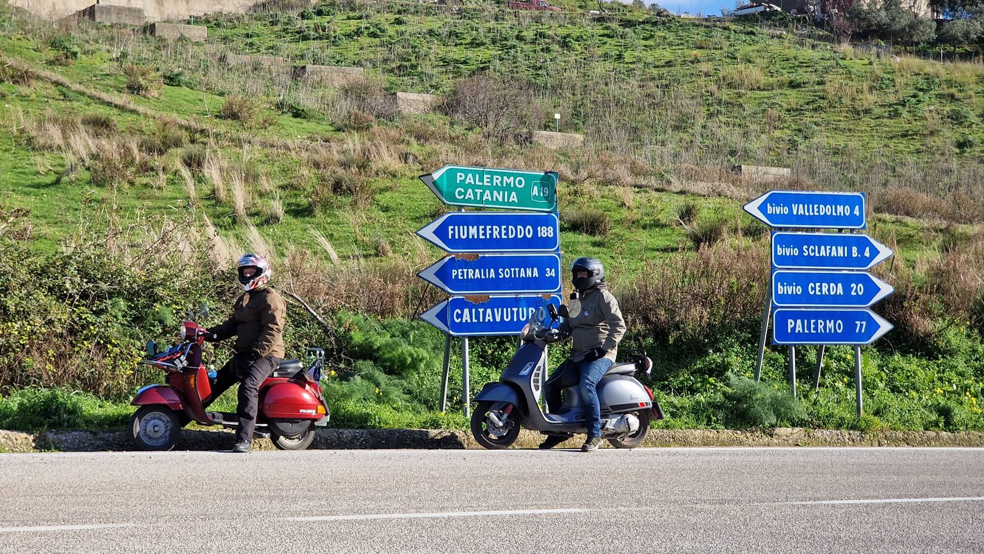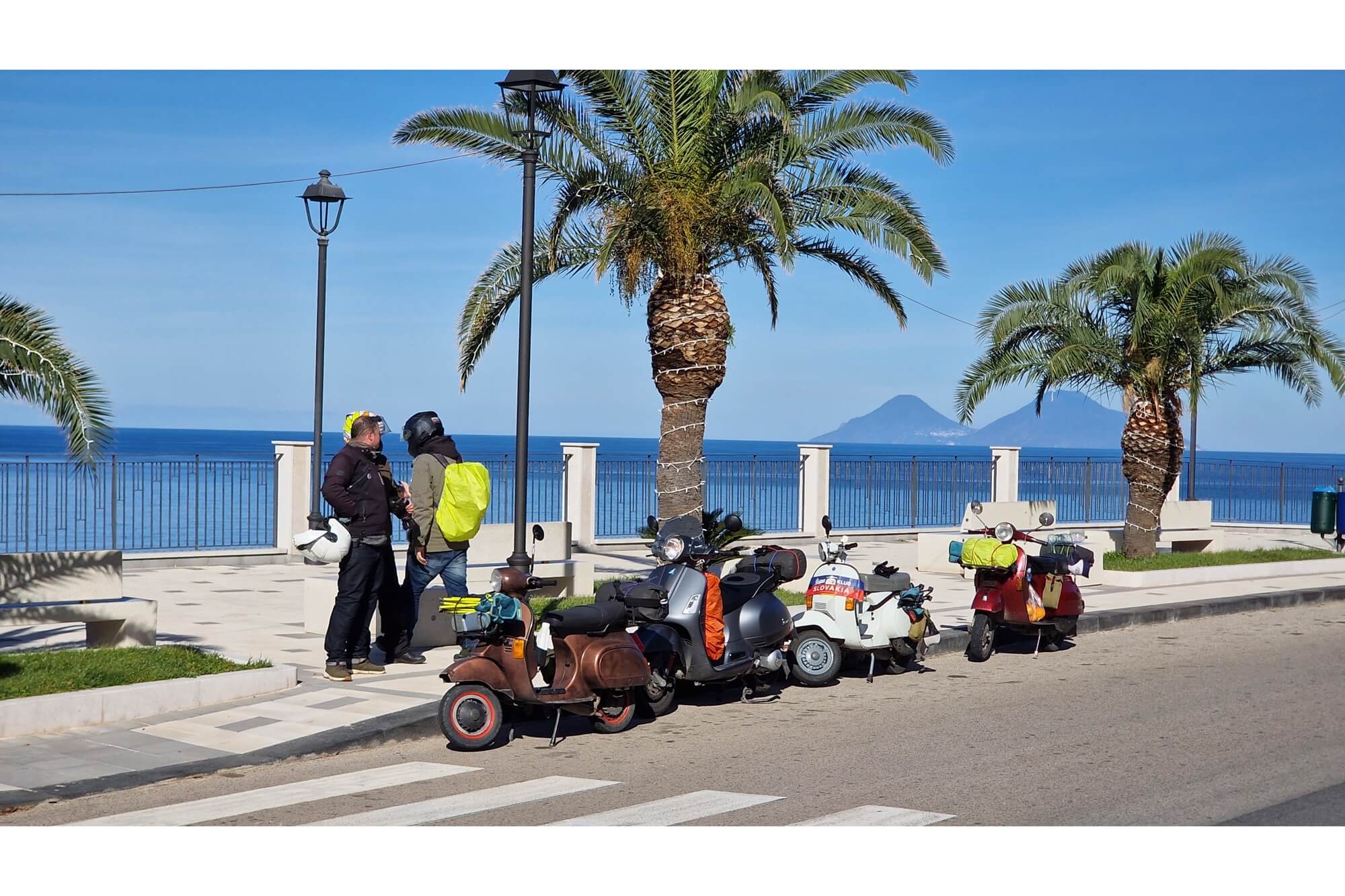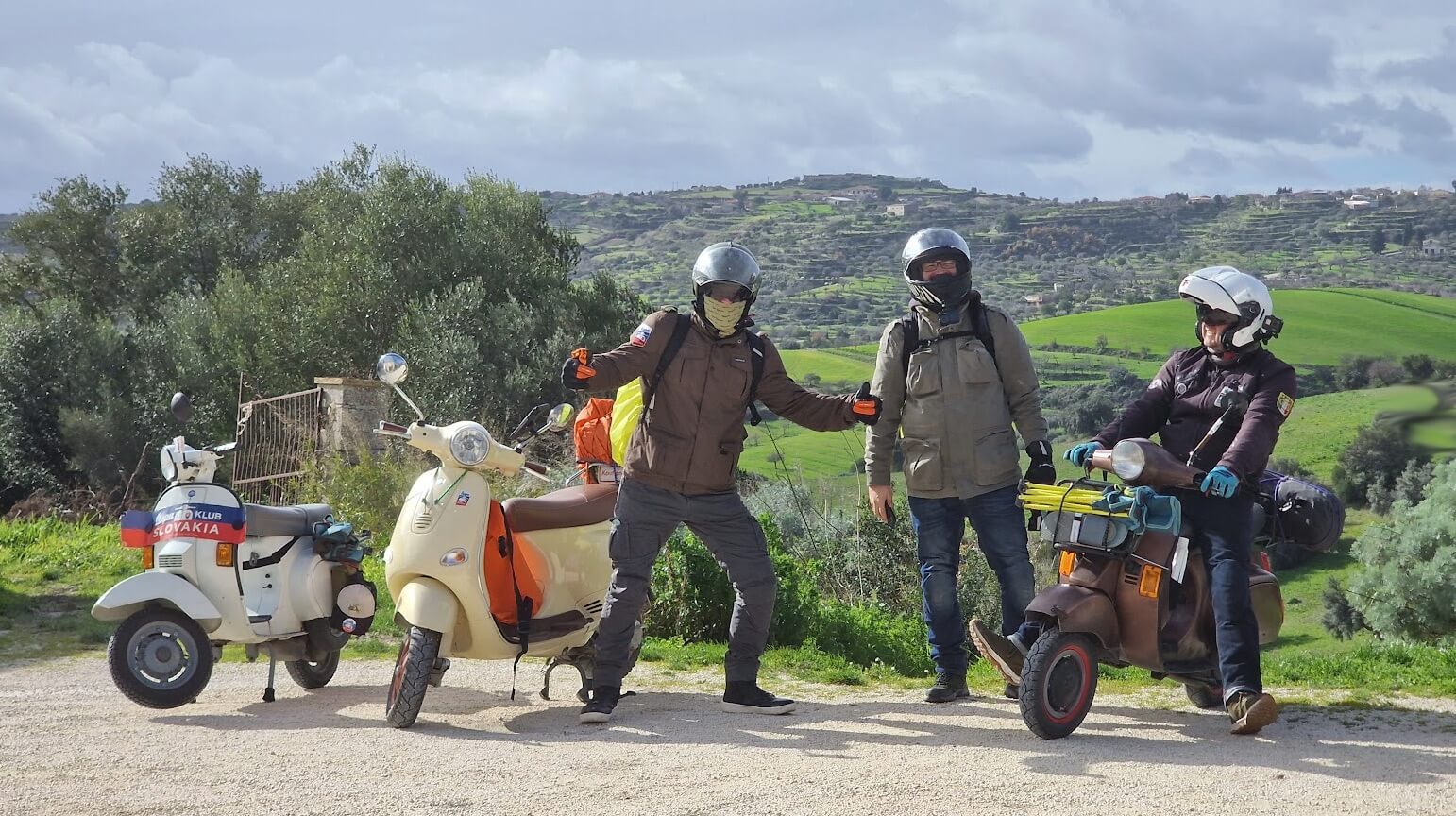 Ecco perché questa volta abbiamo deciso di fare il nostro viaggio invernale di gennaio con il team del Vespa Club Slovakia. Siamo partiti verso la Sicilia per quello che abbiamo chiamato ‘Retro Tour’, già perché hanno partecipato principalmente scooter vintage a due tempi. La nostra formazione per il giro dell’isola comprendeva infatti 5 Vespa: 2 PK, 1 PX, 1 ET2 e una GTS.