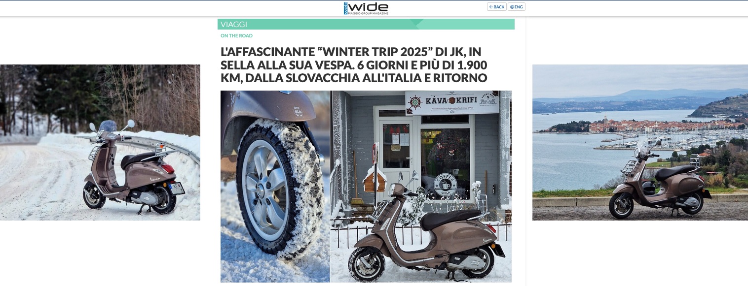 Gennaio 2026 (G.T.) – JK (noto come ‘Signor Vespa’), grande viaggiatore on the road, ci scrive: "Forse i lettori ricorderanno i vari viaggi invernali del ‘Signor Vespa’. In Slovacchia l’inverno è duro; la neve e il gelo non si sposano bene con il nostro spirito di appassionati di tour in Vespa.