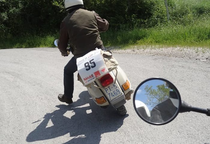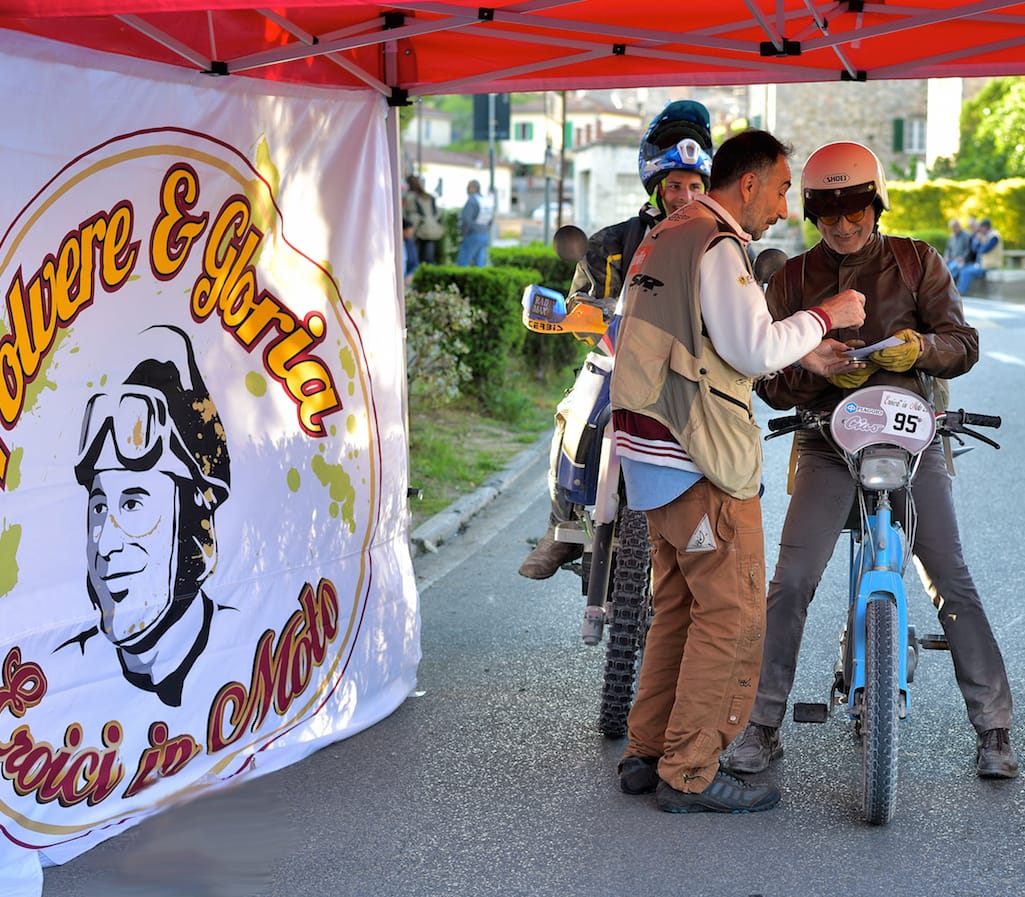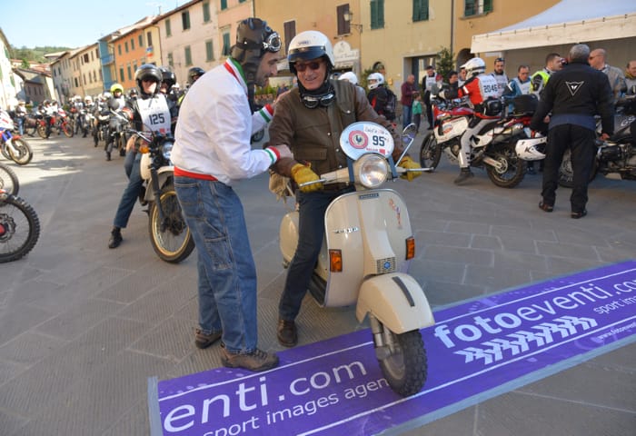 Al via anche Andrea Sabatini di Pistoia, già esperto del ride toscano che nel 2014 affrontò in sella ad una Vespa P200E, unico scooterista tra centinaia di motociclisti. Quest’anno il cimento è stato ancora più arduo: infatti, ha contribuito al restauro del Piaggio Ciao Special (prodotto nel 1969) del suo amico e concittadino Franco Giorgetti, e con il piccolo ciclomotore ha affrontato la sfida. Il motivo della scelta è presto detto: il suo è stato un omaggio al 50° compleanno del celebre ciclomotore firmato Piaggio (1967-2017).