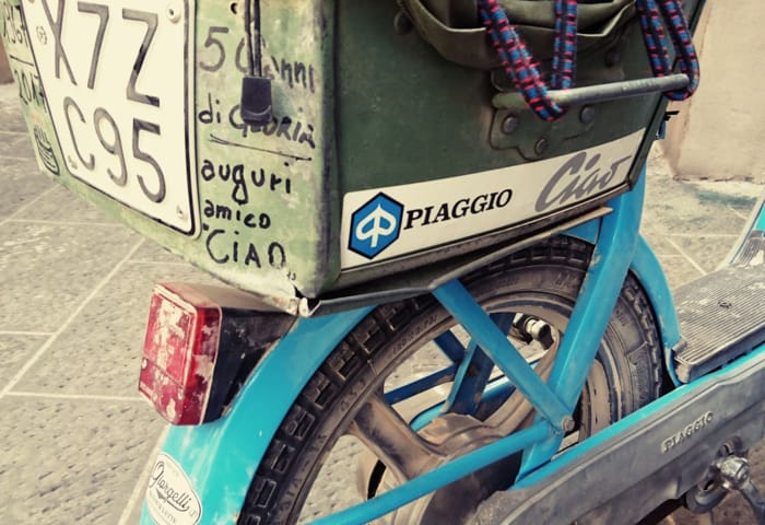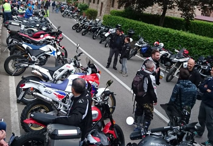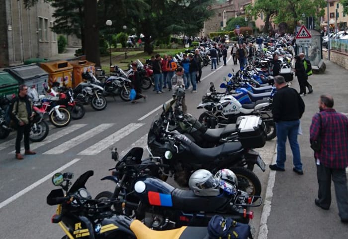 C’erano moto storiche tirate a lucido e moderne accessoriate al massimo, pronte per… la Parigi Dakar. Ma occhiate e macchine fotografiche erano rivolte anche al piccolo Piaggio Ciao, e in tanti mi commentavano: ‘sai l'ho avuto anch'io il Ciao.....è stato il mio primo due ruote....a me lo hanno regalato per i 16 anni (ahimè 50 anni fa)....l'ho trovato in fondo al garage, era di mio padre, è stata la mia prima esperienza di su due ruote…’, e via tra ricordi di gioventù e complimenti per il piccolo sfidante. Alla partenza tutti i saluti erano per il ciclomotore, ormai nominato sul campo ‘mascotte’ del ride. Dopo un’oretta di buon viaggio, ecco l'imprevisto: una rovinosa caduta con capriola in avanti, di cui il Ciao non ha avuto nessuna colpa e, pur a terra, era rimasto sempre in moto e sembrava dirmi: ‘su, dai, riprendiamo la marcia!’. E c’erano anche gli amici ‘moto-eroici’ che mi incitavano ad andare avanti. In tanti ci hanno sostenuto, me un po’ acciaccato e il mio Ciao indomito, a continuare il tragitto, dandoci la carica necessaria per superare lo smacco”. L’incredibile coppia, con numero 95, è infine giunta al traguardo, terminando l’impresa. Questa la foto dell’arrivo.