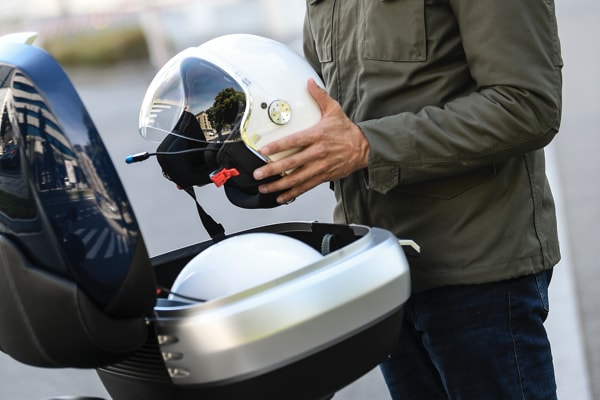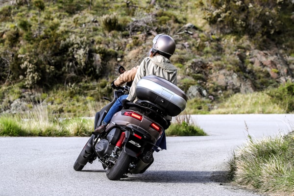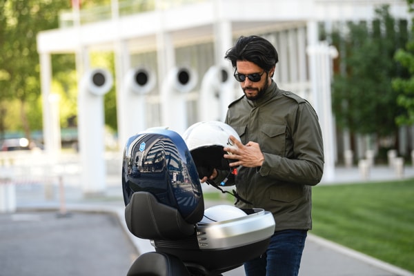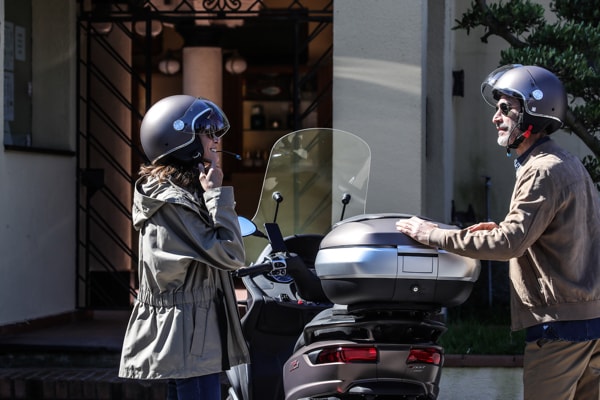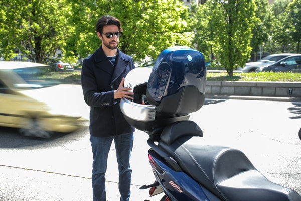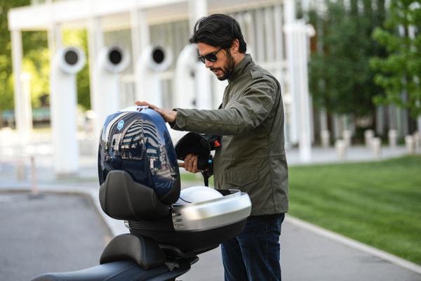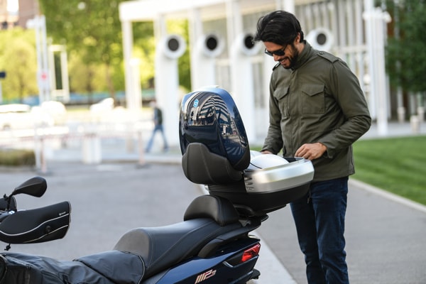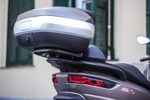 June 2021 - The range of accessories for Piaggio MP3 is based on a precise design philosophy: combining unparalleled on-board comfort with genuine everyday usability, in keeping with its role as a metropolitan commuter. The large rear top box, which can be quickly unhooked and has a 50-litre capacity, can house two full-face helmets. The upper shell is painted the same colour as the vehicle and comes complete with comfortable backrest to make the passenger's ride more enjoyable.