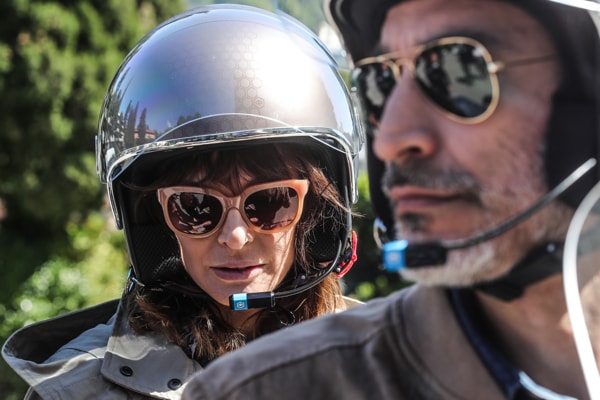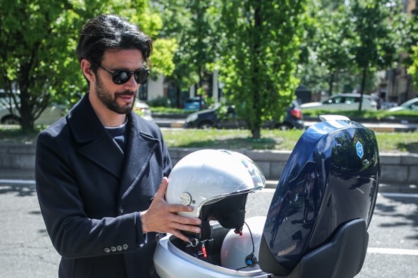 For short trips, urban commuting or "lighter" rides in contact with the wind, there is the Mirror demi-jet helmet with double visor (transparent exterior and hidden sun visor). This helmet offers a really easy, lightweight fit, with interior fittings that can be removed and washed and micrometric closure. The look is characterised by a longitudinal band that replicates the three-dimensional hexagon graphics, and a wide range of colours, all to match those of the Piaggio MP3.