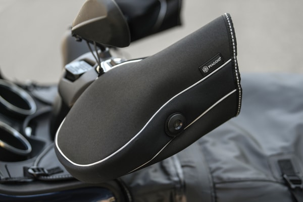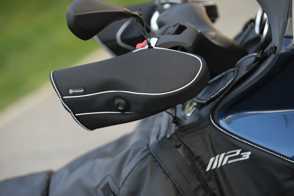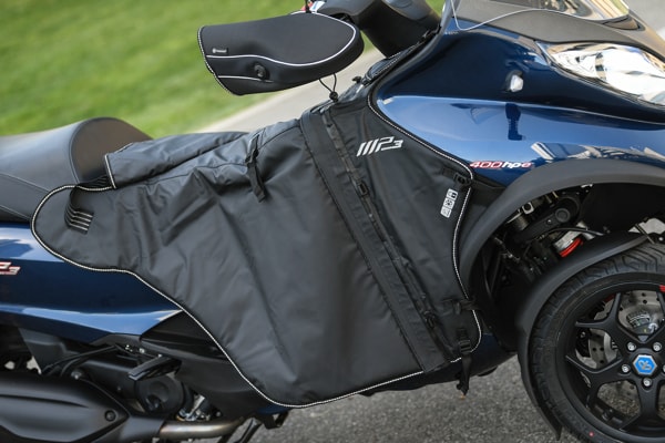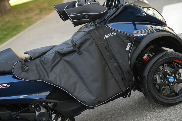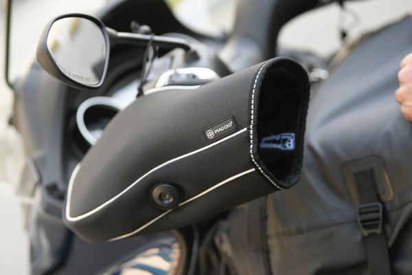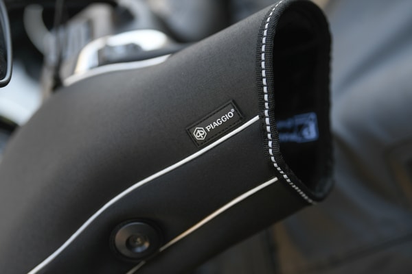 In addition to the traditional leg cover, a Comfort+ cover is available, a «hi-end» concept to maximise riding comfort all year round: designed to fit the shape of the vehicle, water-resistant, modular and easily packed away, it is coated in TPU and features an innovative anti-wave system with stiffening plates.