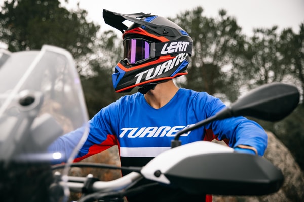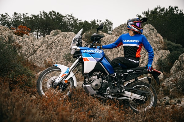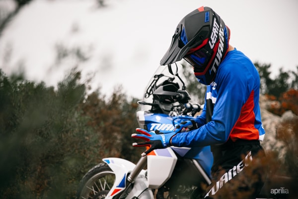 THE LINE OF APRILIA TUAREG 660 APPAREL AND ACCESSORIES FOR RIDERS. Aprilia offers a line of quality apparel, explicitly dedicated to touring and off-roading. The collection includes: Offroad Helmet: ultra-lightweight (940 gr), thanks in part to its carbon fibre shell. Interior padding removal system in the event of an emergency, double D-ring closure. Adjustable visor and high ventilation flow thanks to the numerous air vents. Interior fully removable for washing. Compatible with the neck brace. Multiroad Helmet: shell in high-resistance thermoplastic resin; featuring a retractable sun visor, interior in hypo-allergenic material that can be removed and washed. Interior padding removal system in the event of an emergency, double D-ring closure. Flip-up Helmet: shell in high-resistance thermoplastic resin; featuring a retractable sun visor, interior in hypo-allergenic material that can be removed and washed, and a chin bar movement mechanism with front control. It also has a modern Bluetooth connection system that lets you pair your smartphone and navigation systems, as well as an intercom feature between the rider and passenger helmets.