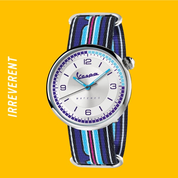 You can see the whole collection on the www.vespawatches.com website (it is also shop online and where find the best shops selling Vespa wristwatches). Each of the three lines, Irreverent, Heritage and Classy, offers a variety of models and colours.