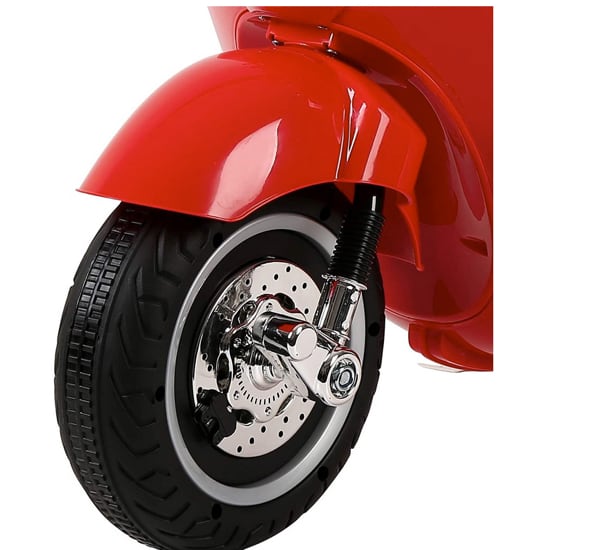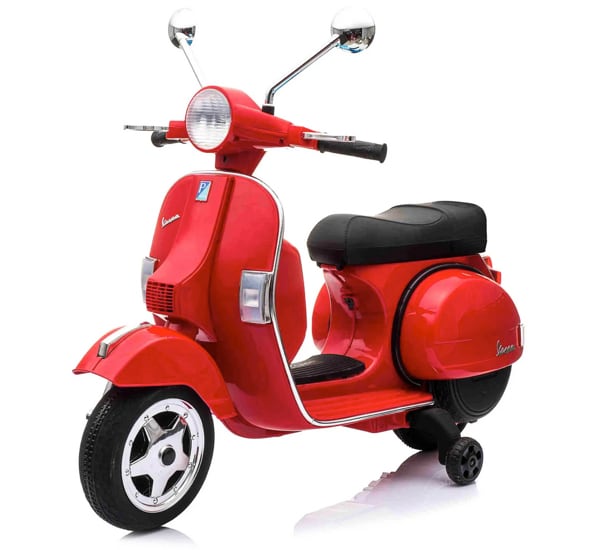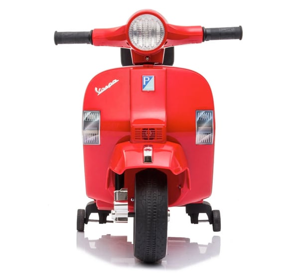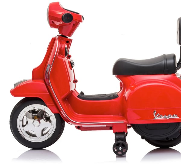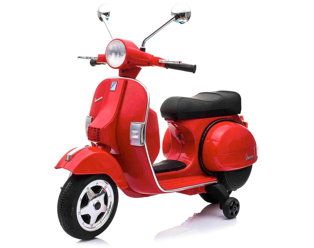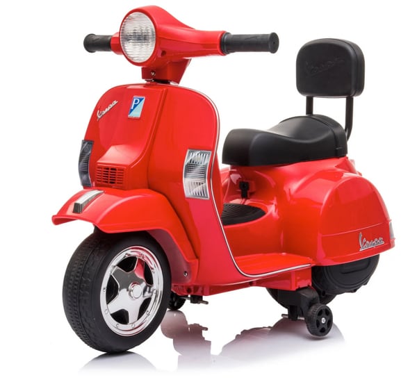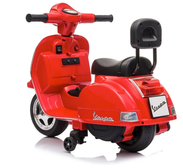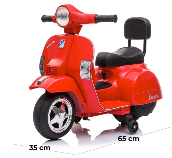 Mini 6V electric Vespa PX 150 for children (red or white), with backrest.