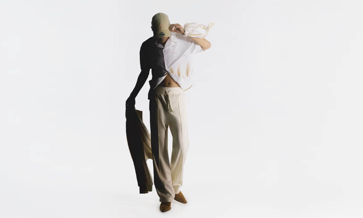 Cable knit vests and barn jackets tell a story of countryside and city, of easy-to-wear versatility. Soft denim, a cargo-pocket mini skirt, representing a youth unafraid to express itself. A suit without constraints, a leather bomber jacket that envelops with its boxy fit, and chaps evoking the wild West, the storied land of explorers.