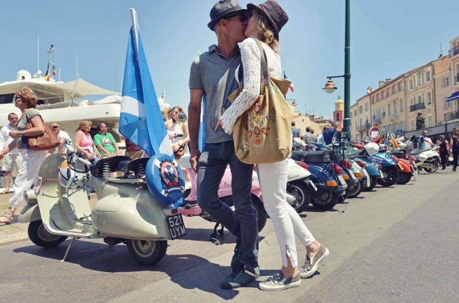 Our favourite photo? This one: a kiss in front of the Vespa scooters parked along the Saint Tropez quayside. True romance!