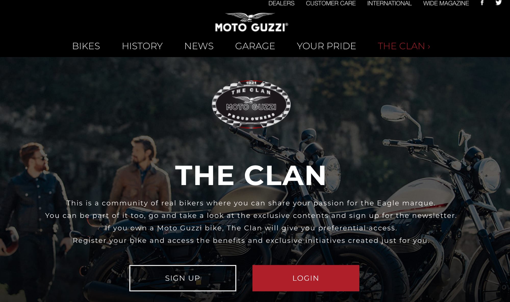 Members of the The Clan community (theclan.motoguzzi.com/en/ ) – for fans of Moto Guzzi – will be able to access special services and activities reserved exclusively for them, such as free riding courses, helmet personalisation and exclusive gadgets.