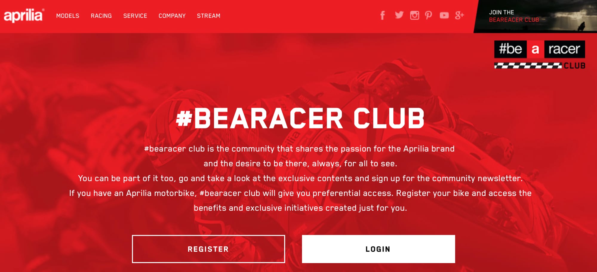 Members of the #bearacer club (bearacerclub.aprilia.com/en ) – for fans of Moto Aprilia – will be able to access special services and activities reserved exclusively for them, such as free riding courses, helmet personalisation and exclusive gadgets.