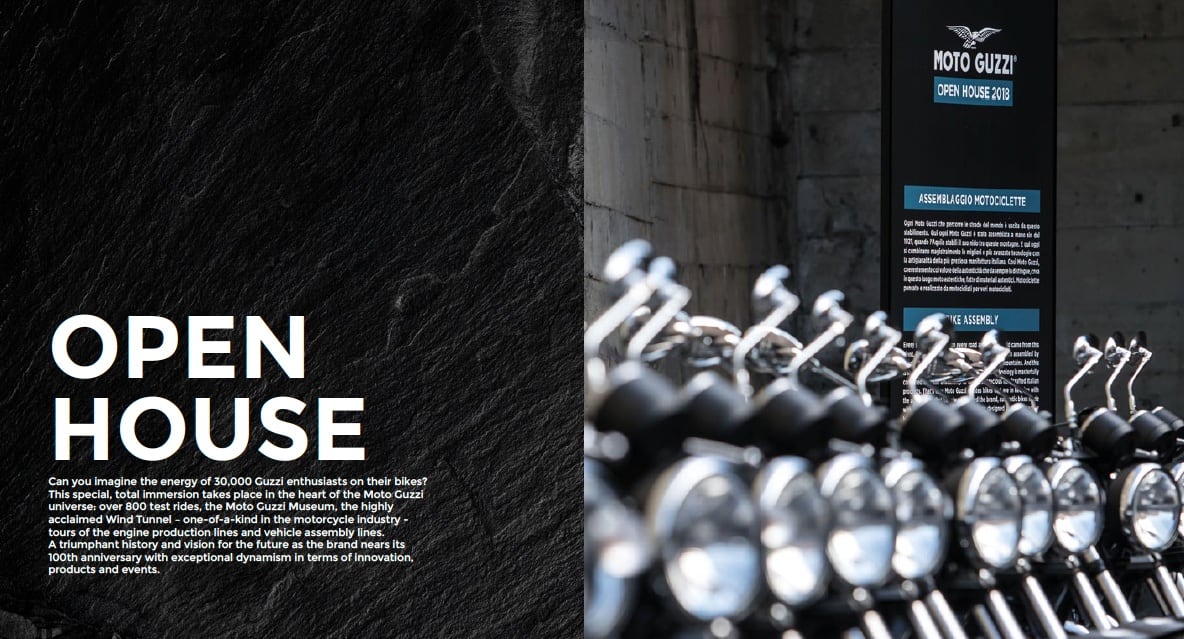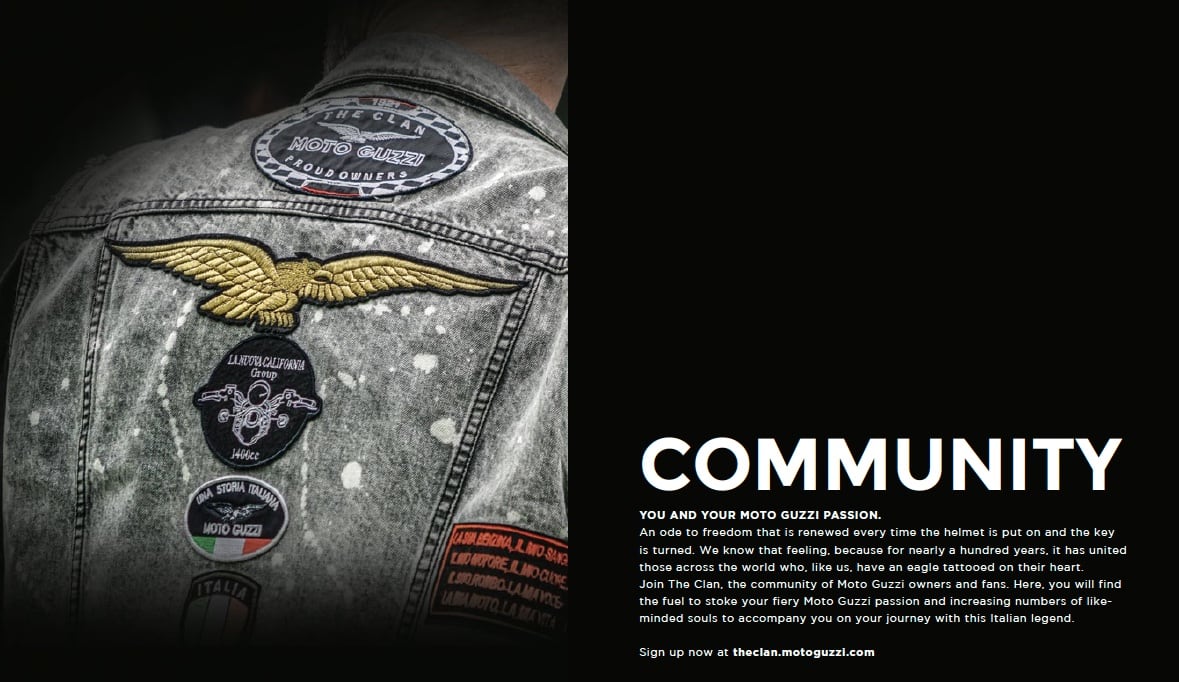 SPECIAL “THE CLAN” EXPERIENCES. Needless to say, Open House has a very special place in the hearts of us guys of the community. We have been the stars of the show ever since The Clan was born and once again this year there will be loads of special experiences reserved specifically for us, including some of the old, much-appreciated classics – the community members will benefit from some dedicated services such as reserved parking, free bike check-up, welcome kit and discounts on the Moto Guzzi 2019 collection – as well as a few new surprises and unexpected goodies: we’ll know more about that very soon indeed! It’s time to draw a nice big eagle with splayed wings on your calendar: the call has gone out for everyone to join us at Open House, so all that remains to be done is for you to plan your trip and jump on your Moto Guzzi!