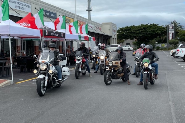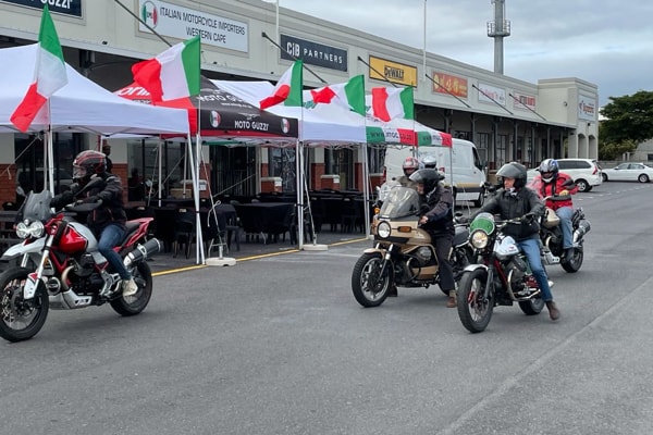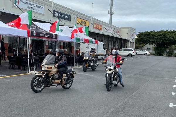 In Cape Town, riders met at a few different meeting points and then made their way through to the dealership in Cape Town, where they were served an Italian Lunch. Cape Town had 40 Guzzis present, with around 120 people present at the dealership. Here are the photos.