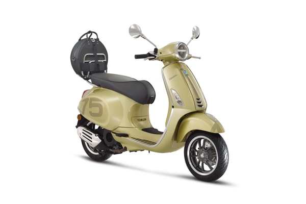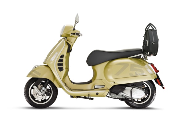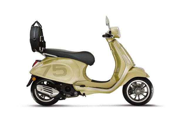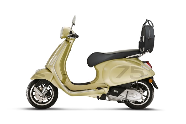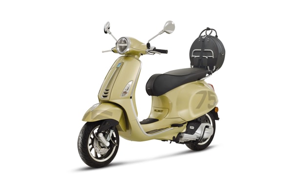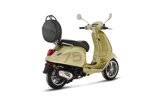 THE VESPA 75th WILL BE SOLD IN 2021 ONLY: A UNIQUE OFFER TO CELEBRATE A LEGEND THAT HAS ACCOMPANIED OUR CHANGING LIFESTYLE OVER 75 YEARS. AVAILABLE IN THE PRIMAVERA AND GTS MODELS, WITH A STYLING CREATED SPECIFICALLY FOR THE ANNIVERSARY: AN EXCLUSIVE LIVERY, SPECIAL FINISHES, NEW SADDLE AND CHROME-PLATED LUGGAGE RACK FOR A BAG DESIGNED FOR THE SCOOTER.