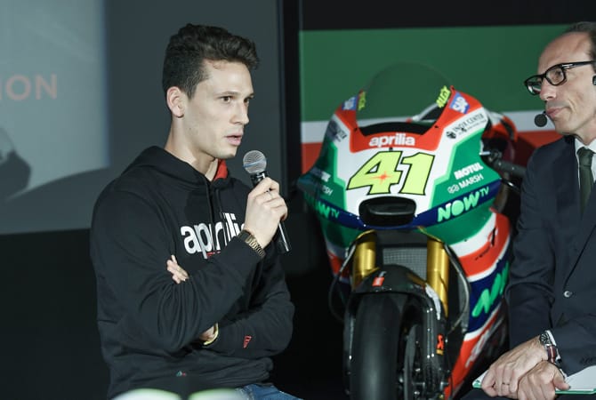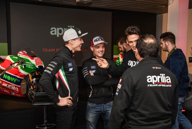 The photo-story of the event, with players interviewed by the Italian journalist Guido Meda (MotoGP commentator and deputy director of Sky Sport). Among the guests, the rider Lorenzo Savadori, engaged in WSBK in 2017 Aprilia RSV4 RF (Milwaukee Aprilia team). He, Aleix and Sam then met fans of the club Aprilia #bearacer (article and photos in the Community column).
