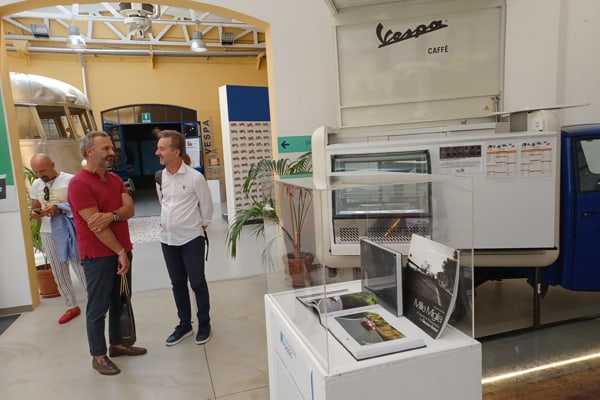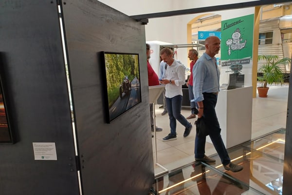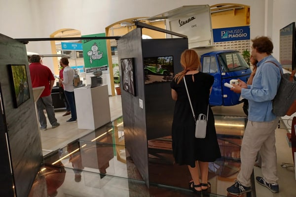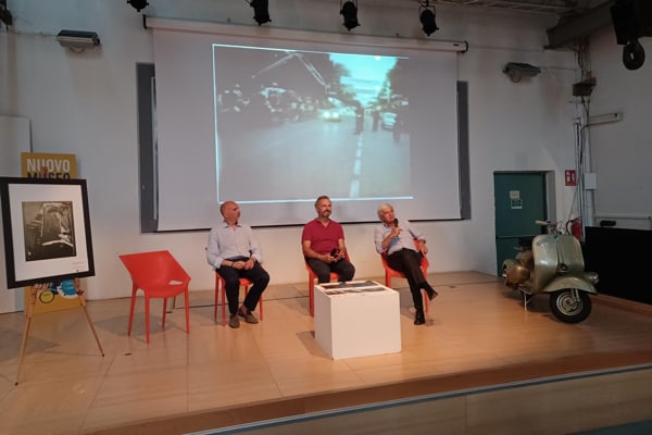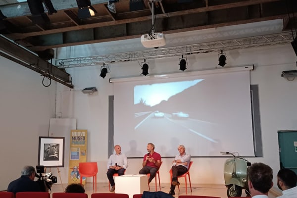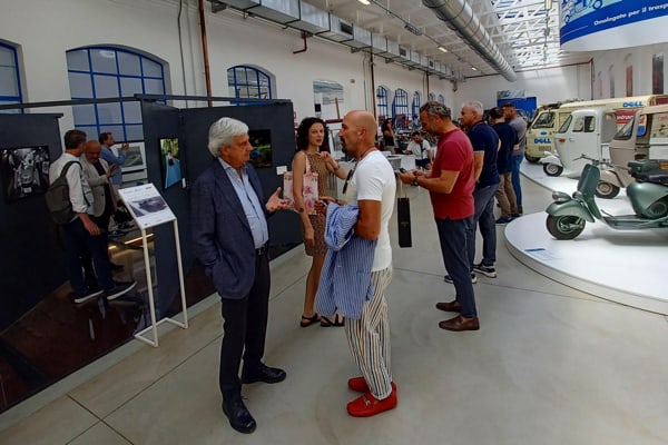 Monday 13 June, press conference and inauguration of the exhibit, with Bretzel’s works on display in the auditorium and the Museum entrance hall. In addition to the press, Deputy Mayor of Pontedera, Alessandro Puccinelli, was also present. On the big screen, the video “Poetry in Motion” by Bretzel: a film from 2008 done in Super8. The charm of yesteryear, to enhance the design of the cars and the beauty of the Italian territory.