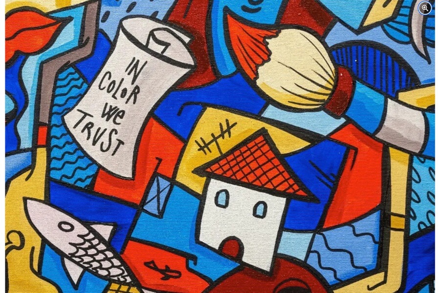Every work invites the viewer on a unique journey, where observing and interpreting the details can breathe life into many different narratives. Skim’s art is distinguished by its appeal and charm, and his motto “In Color We Trust” sums up his creative approach, which he establishes through his exhibitions, performances and public works.