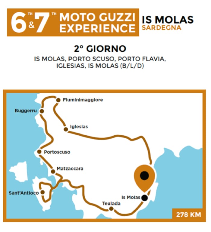 After 5 magnificent editions – the first in September 2017, the last in Trentino in May 2018 – in September and October, Moto Guzzi Experience thus returns to Sardinia, with a new formula renewed and enriched in the cultural, landscape and itinerary programme. A full immersion in the Moto Guzzi world: even more engaging, even more exciting. The entire 2018 range of the Eagle to tried out, from the new V7 III special series to the MGX-21 flying fortress, in 4 exciting days in the saddle: starting from the hospitable and cosy Is Molas Golf Resort, to travel to discover the beauties of Sardinia, and some of the roads that have given this region the fame of “biker's paradise”.