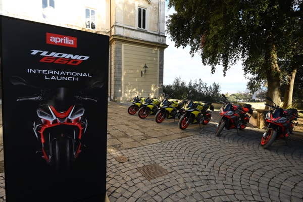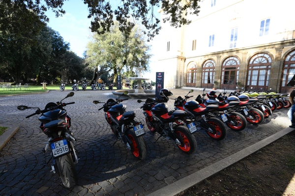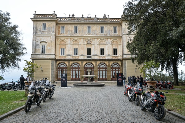 February 2021 – For the first time ever, a double international press launch for the 2021 news from the Piaggio Group motorcycle brands: Aprilia with the Tuono 660, and Moto Guzzi with the V7, presented simultaneously. The launch was held successfully from 15 to 20 February in Lazio (centre of Italy, near Rome), in the renowned Castelli Romani area, involving 60 journalists from nine countries: Italy, France, Germany, the Czech Republic, Poland, Greece, Switzerland, Croatia and Slovenia. Location: Park Hotel Villa Grazioli in Grottaferrata (on the slopes of the Albani Hills), a historic cardinal villa, richly decorated with seventeenth and eighteenth century frescoes, is one of the 12 Tuscolane Villas built by the papal nobility in the sixteenth century, later restored in the eighteenth and nineteenth century, surrounded by an exquisite park.
