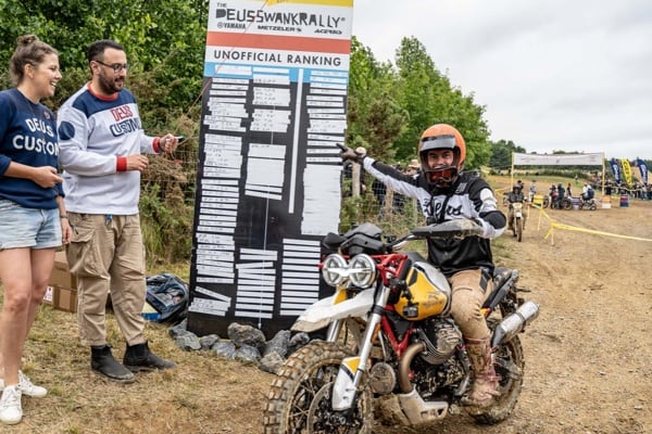 English translation of the video: “It is a festival with a truly fantastic atmosphere. The people are super equipped, both in terms of clothing and accessories. I really like it a lot. There are beautiful bikes and captivating events. It is a festival where you really see a lot of interesting things. Hi, I'm Fabien and I am from Paris. I am very, very happy to be participating in the Deus Swank Rally. I decided to take part in this competition because Moto Guzzi is a truly important brand for me. I was very happy and honoured to be able to represent it in this race. I basically expected a race like this, maybe with a bit less mud. It was very difficult in the muddy sections, but it is more or less what I expected. It was fantastic and I was very happy to be there. I was chosen by The Clan community after an online vote. There were 9 of us up for the chance to ride the bike today. So, obviously I wish to thank everyone who voted for me - there were a lot. It is also thanks to them if I can ride the V85 TT here. Well, we just took a small test lap with the bike. The race will start soon and I can’t wait to try it out on the circuit... And then, I didn’t ride the V85TT too badly during the festival. I love this bike. It is very agile and lets you turn very easily. The power is more than enough to have fun, the braking is good and it is very, very comfortable. On nice, dry terrain, it is truly extraordinary. It was really a beautiful day. I was very proud to participate in this competition and to be the official Moto Guzzi rider here this year. I am happy to have made it to the end of the race. I have my finisher medal and it is really the bomb - fantastic! A super race. I wish to thank all the participants who voted for me in The Clan Moto Guzzi.”