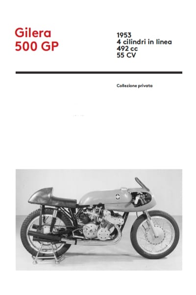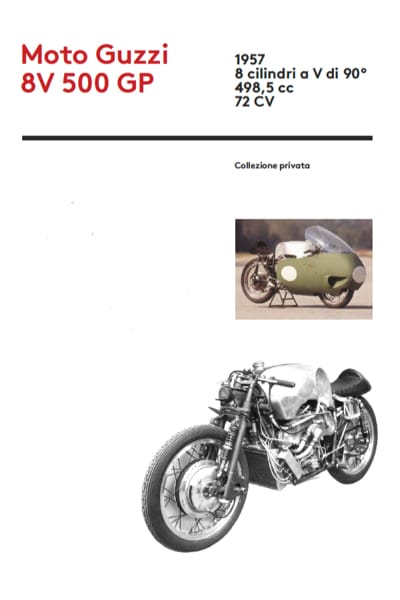 The exhibition's image-symbol is a splendid artistic interpretation of the 1957 racing version of Moto Guzzi 8V 500 GP.