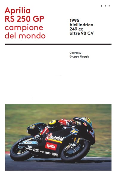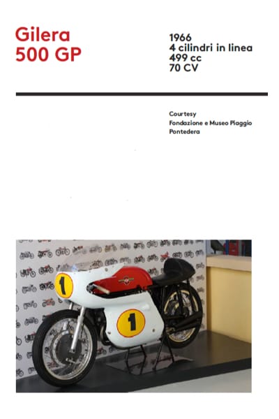 Designed as a truckload of the most famous aerodynamic profiles of Italian motorbikes (with some international appearances), the exhibition aims at explaining how the concepts of design and safety evolved in this sector, using the icons created by Italy’s best manufacturers. This great exhibition, focused on the epic of Italian motorised two-wheelers, will dialogue with the Architecture Biennial in Forte Marghera.”