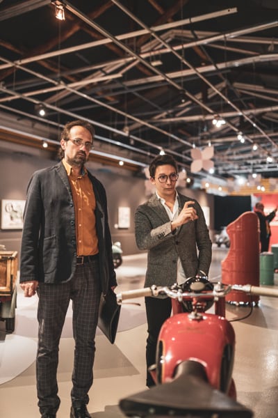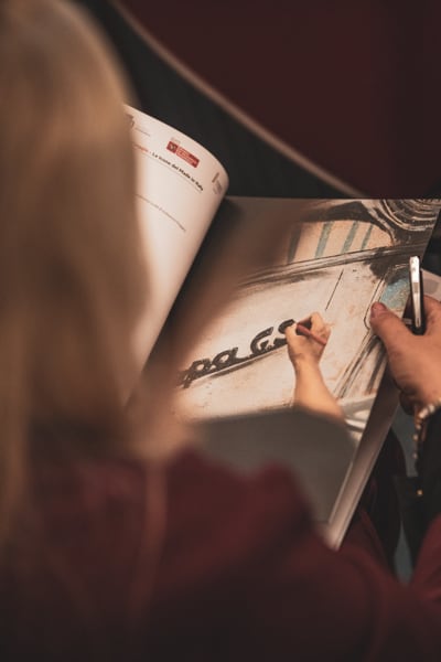 Participating in the exhibit inauguration, which took place on Friday, 21 October in the Museum Auditorium, with Chairman Costagliola doing the home honours, was the artist, Stefano Berardino (“born into the trade”, with the family workshop in Orta San Giulio boasting 40 years of activity), collector and car and Vespa enthusiast. “In my art, I represent this passion, making it tangible.” His works, therefore, also make tangible the memories of many enthusiasts who love to display a Berardino painting in their living rooms that depicts their favourite car or the first Vespa of their youth.