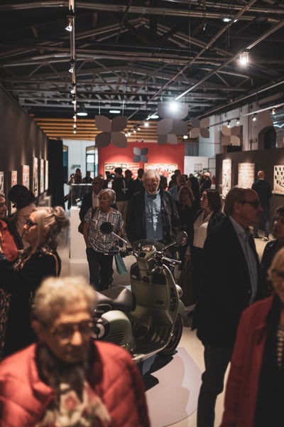 The traditional “ribbon cutting” of the exhibit grand opening was followed by a cocktail with the contribution of some of the territory’s organisations par excellence: ANGIOLINI-Il sublime del cacao, B-DONE custom indoor & outdoor design, LA CITTADELLA CAFFE’, TENUTE LUNELLI, and SAVITAR TARTUFI – San Miniato. Mayor Franconi took the opportunity to point out the combination of art and territory that is also accomplished in the new exhibit promoted by the Piaggio Foundation as a further sign of the commitment of Pontedera, in the Tuscan Valdera region, candidate for Capital of Culture 2025 in Italy.
