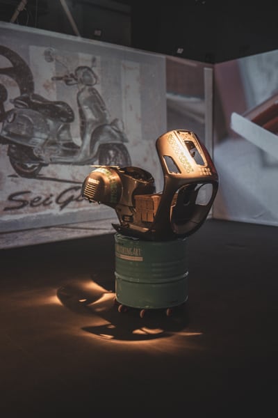 The Icons of ‘Made in Italy’, an exhibit curated and produced by the Piaggio Foundation – Sabrina Caredda and her team - and architect Luca Masi, with layout and graphic design by Silvia Paracchini and Claudio Bellosta, is a homage to the forms and history of one of the most significant iconic vehicles of our country, a demonstration of love and pride for made in Italy, embodied in the art, colour, palette knife, and passion of Stefano Berardino. The exhibit catalogue is a must-see, edited by art critic Luca Nannipieri, with the contributions from Matteo Franconi, Mayor of Pontedera, and Riccardo Costagliola, Chairman of the Piaggio Foundation.